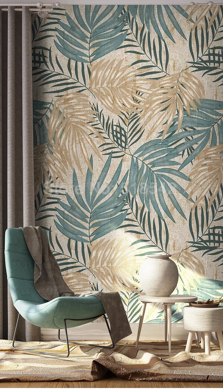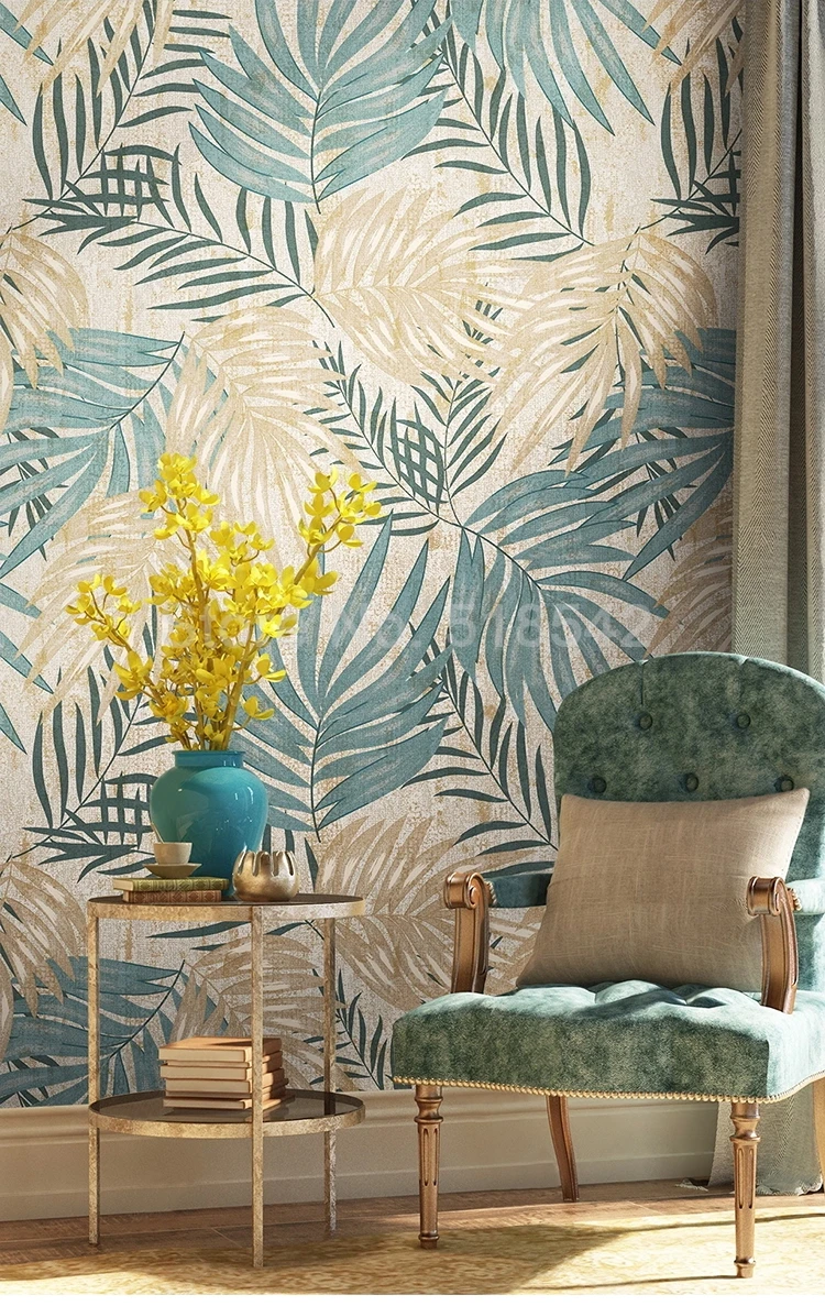 3D настенная роспись с изображением листьев растений, пасторальные обои для спальни, гостиной, фона для телевизора, водонепроницаемая ткань, настенная живопись