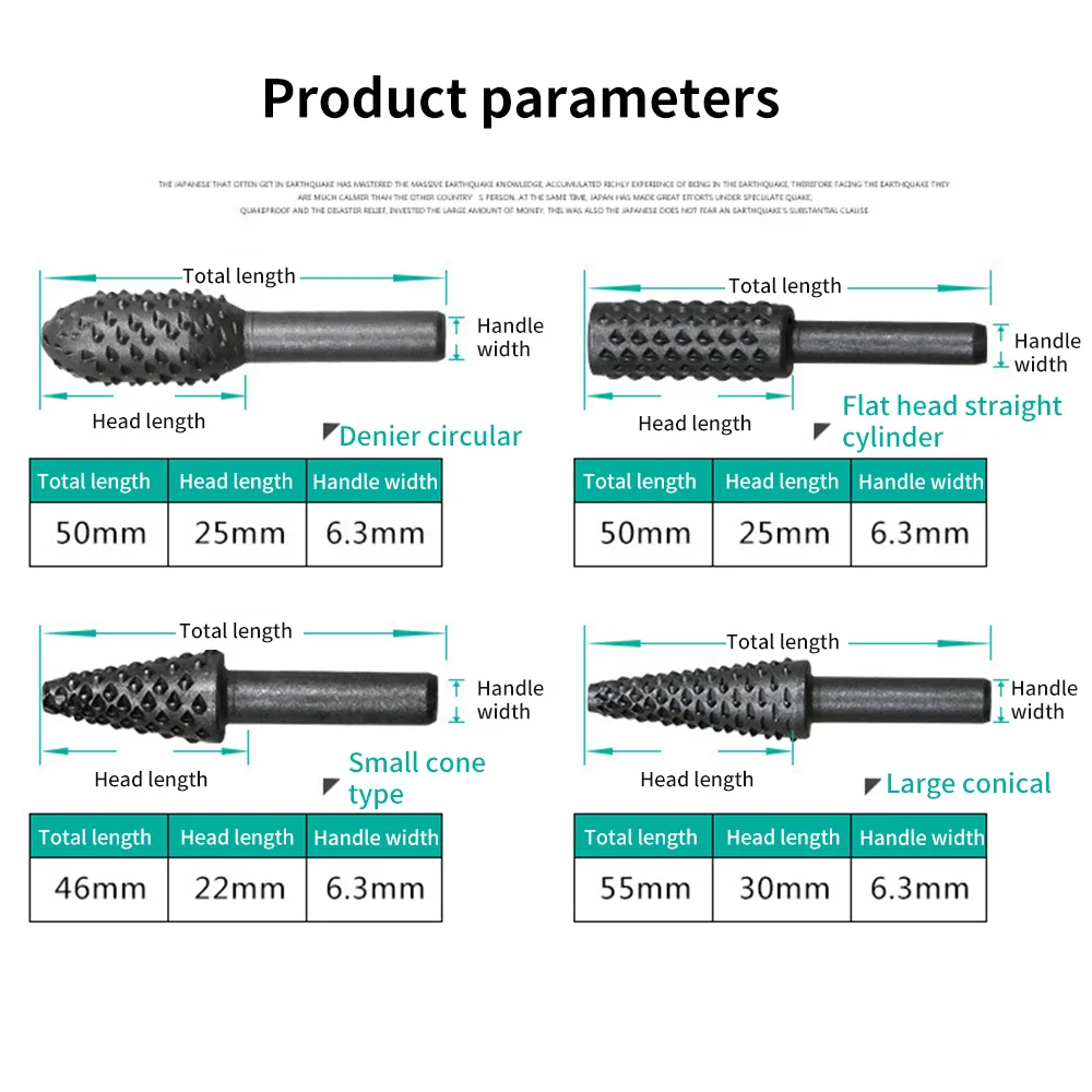 Вращающийся Рашпиль для столярной древесины, 5 шт., 1/4 дюйма, хвостовик, ротор, ремесло, напильник, рашпиль, заусенцы, шлифовальный инструмент, ручной инструмент для резьбы по дереву, деревообработка