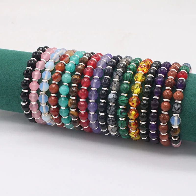 Буле песок тигровый глаз Опал Браслеты Натуральный Камень круглые бусины эластичность веревка для мужчин и женщин Браслет Йога Чакра Ювелирные изделия