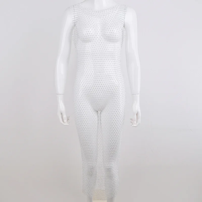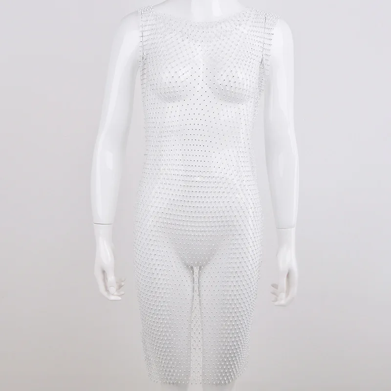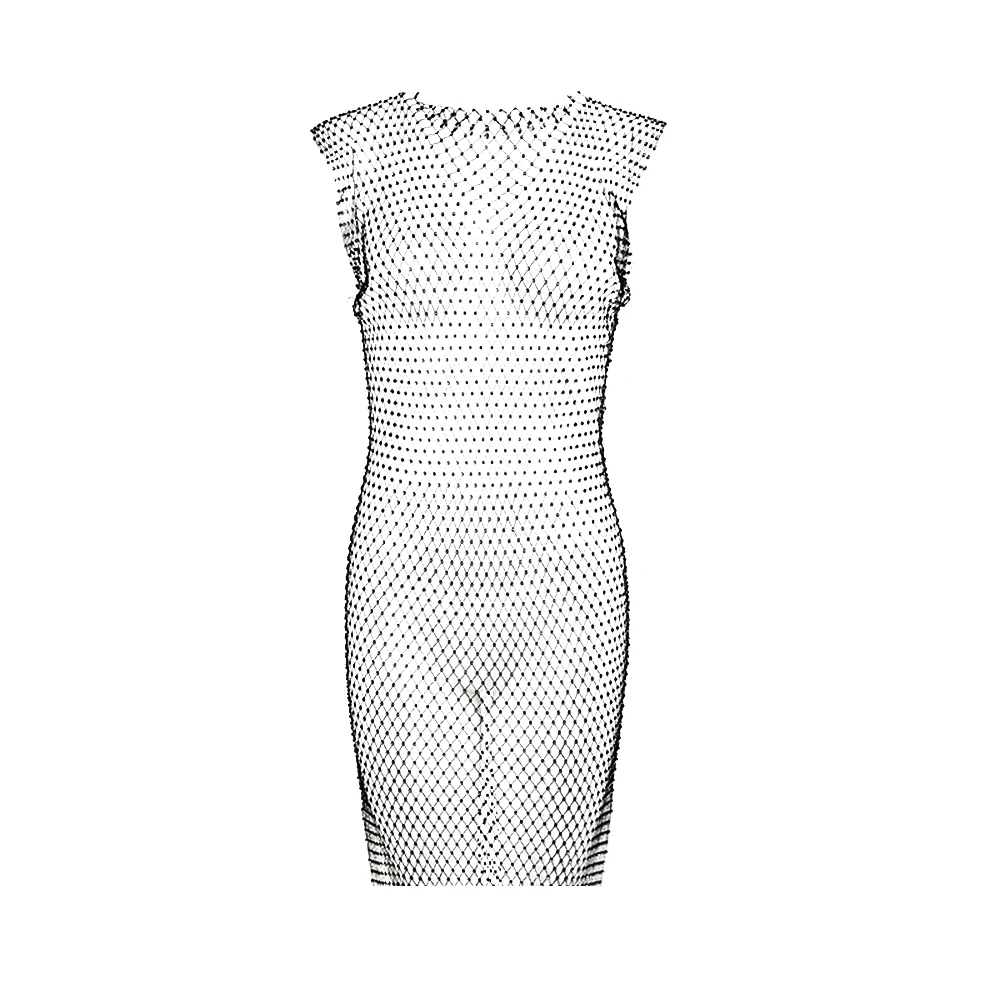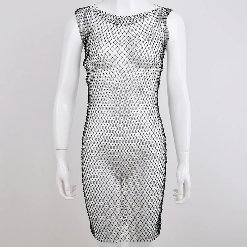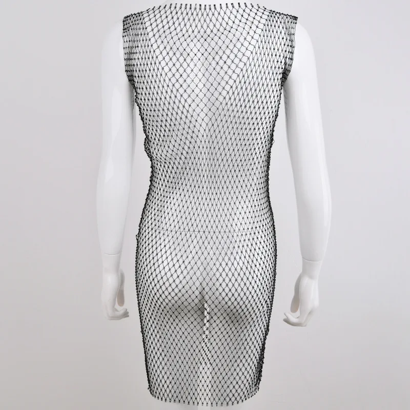 Платье-мини с кристаллами, стразы, без рукавов, летнее, Сетчатое, для вечерние, 2021