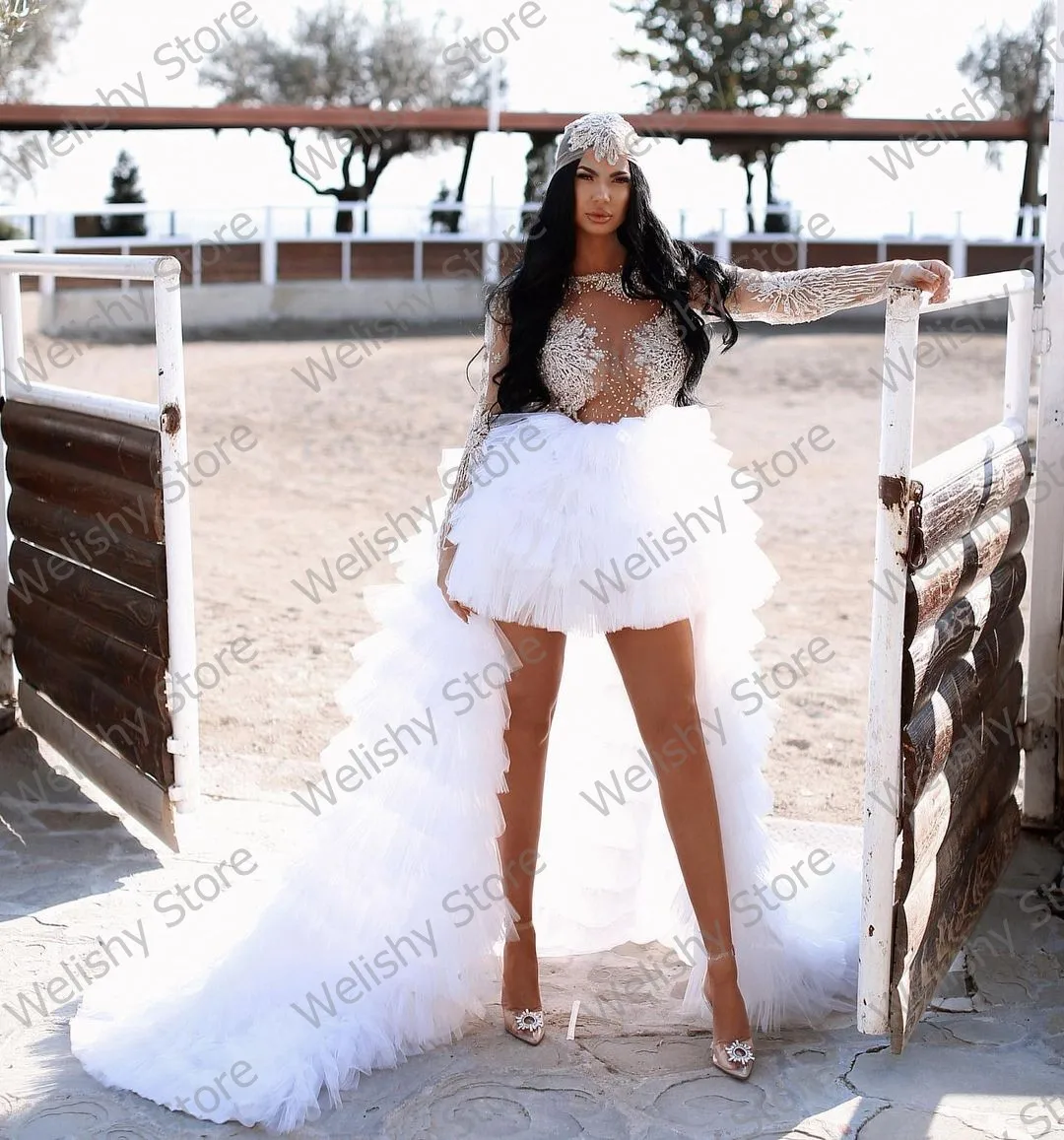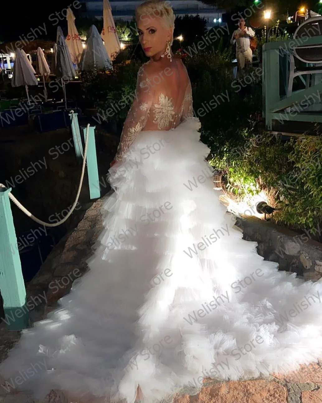 Женская длинная юбка с оборками, модная белая юбка из тюля с оборками в несколько рядов, длинная юбка со шлейфом для невесты