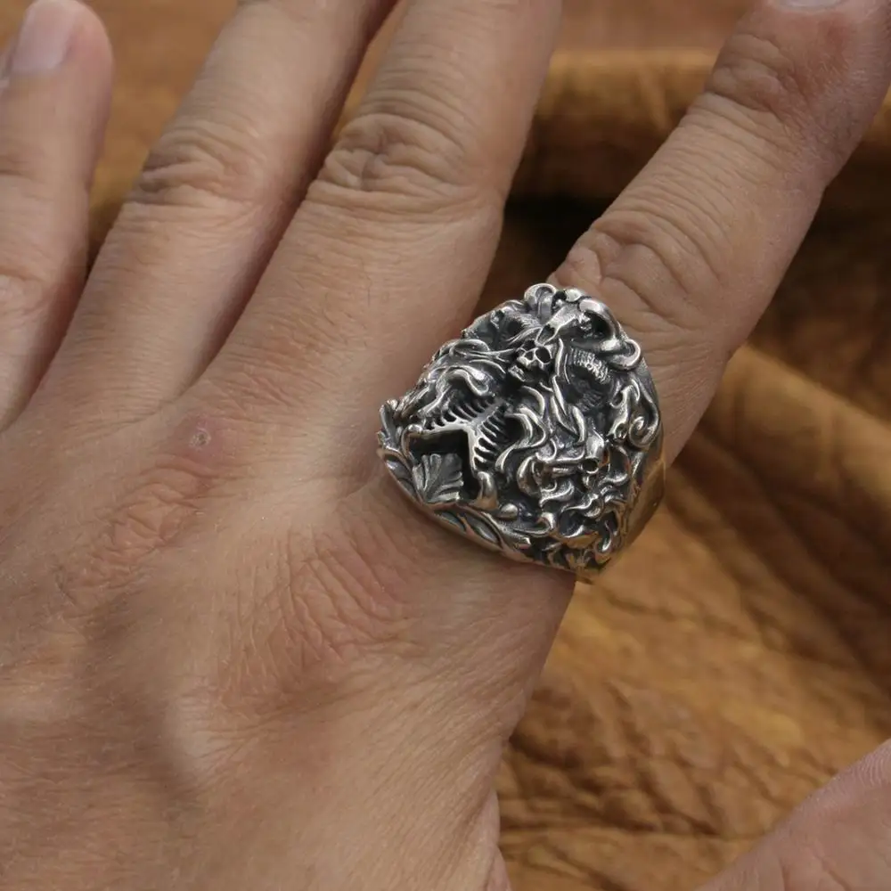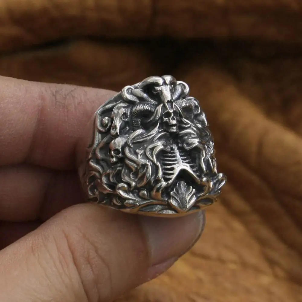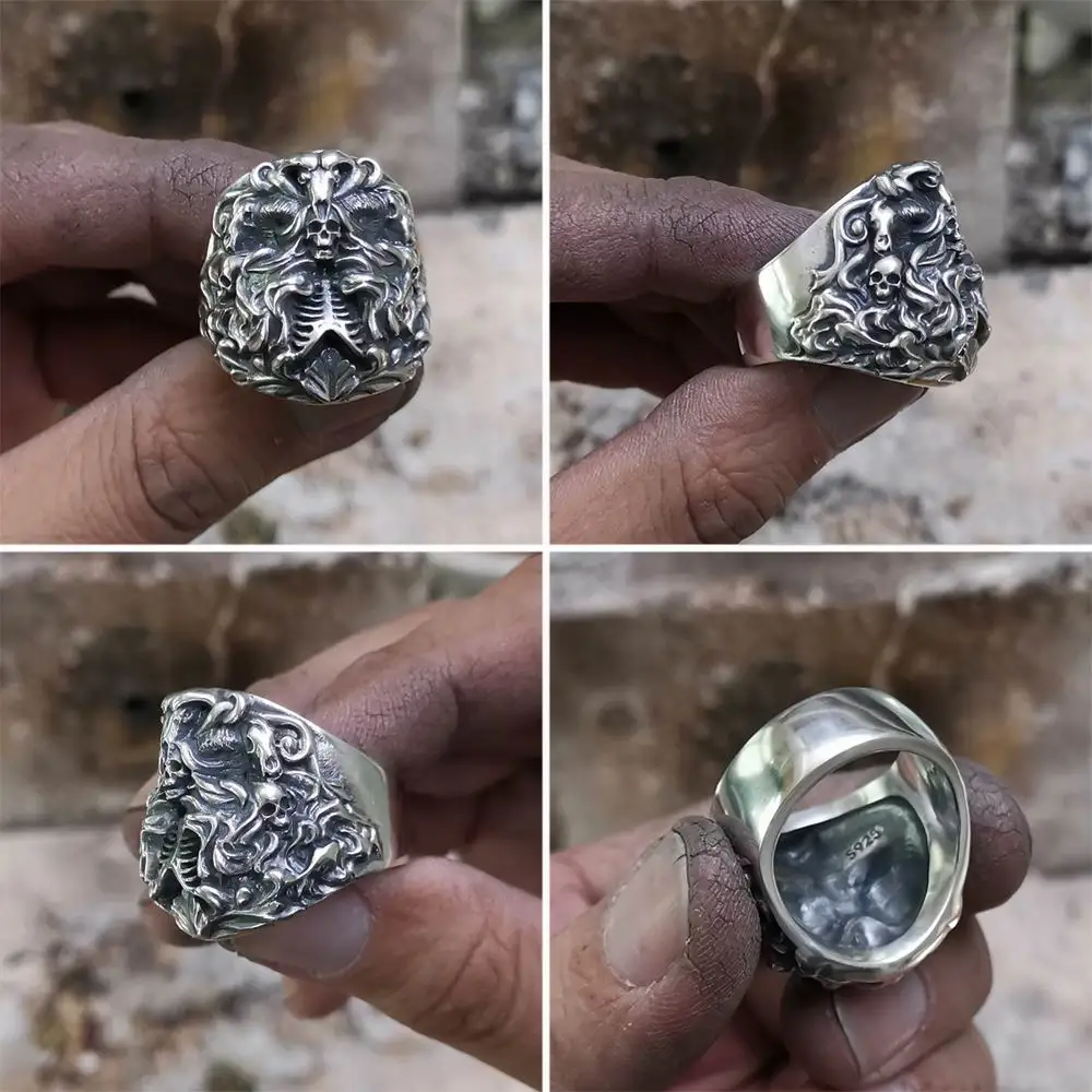 Кольцо мужское в стиле панк, из серебра 925 пробы, с черепом, TA259, размер США от 7 до 15