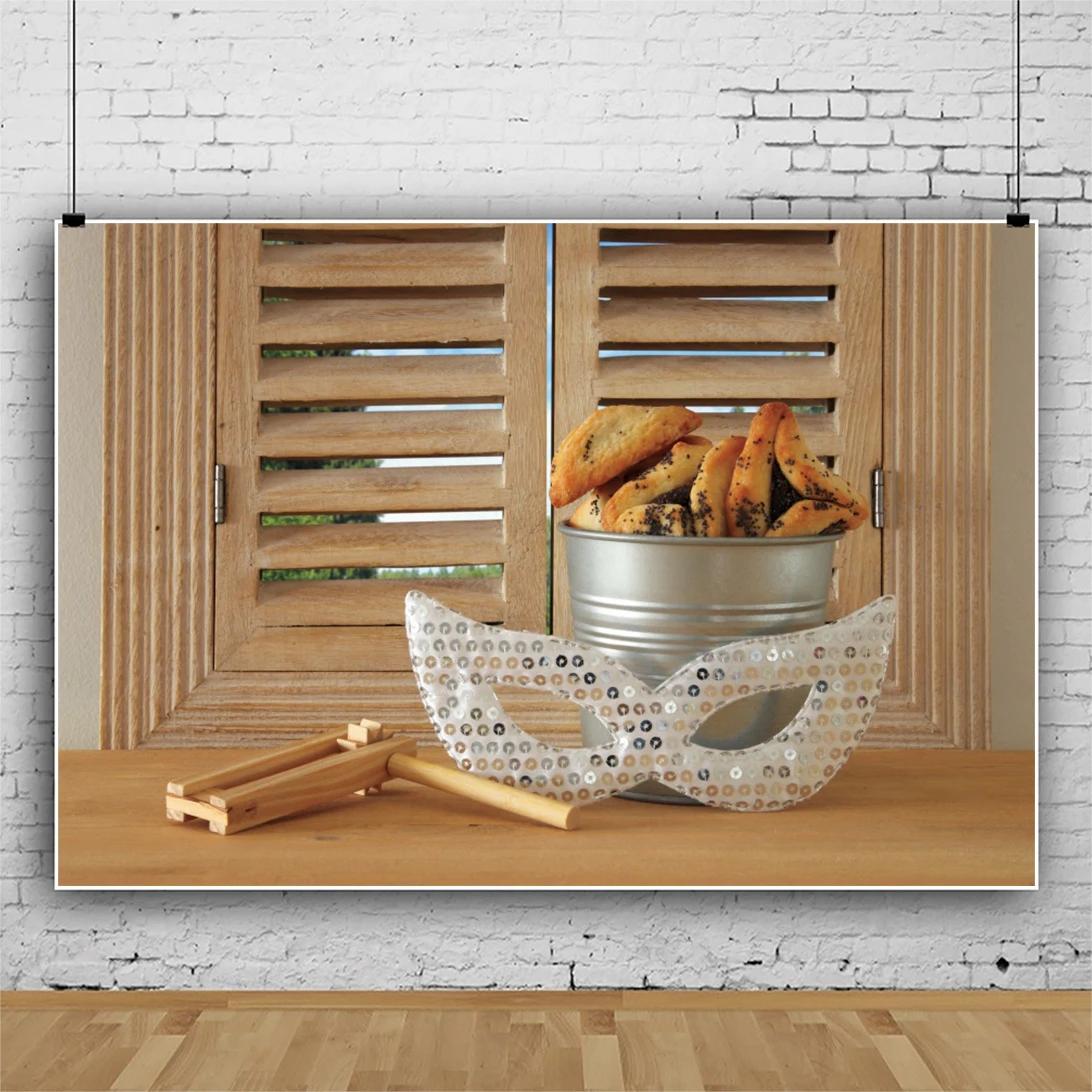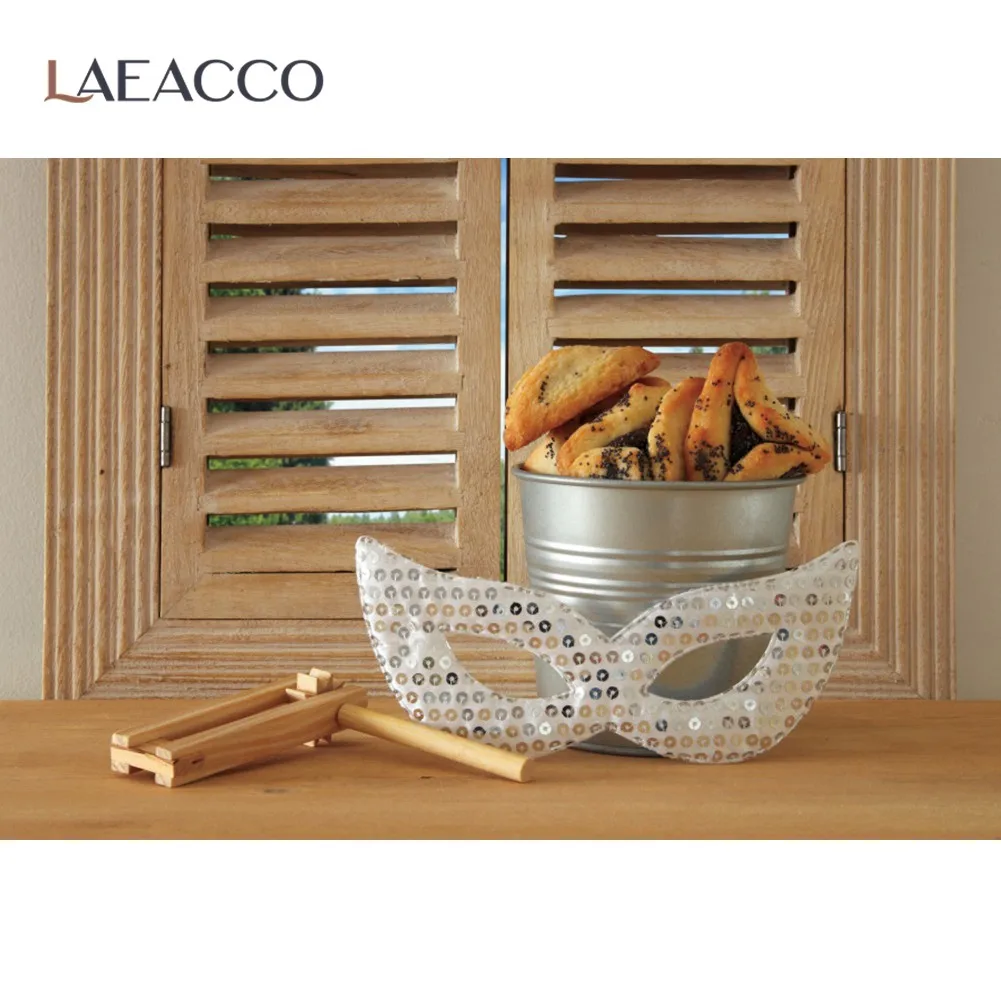 Фон для фотосъемки с изображением деревянной доски Laeacco Happy Purim Festival Bucket Haman's Ears десерт вечерние ринки