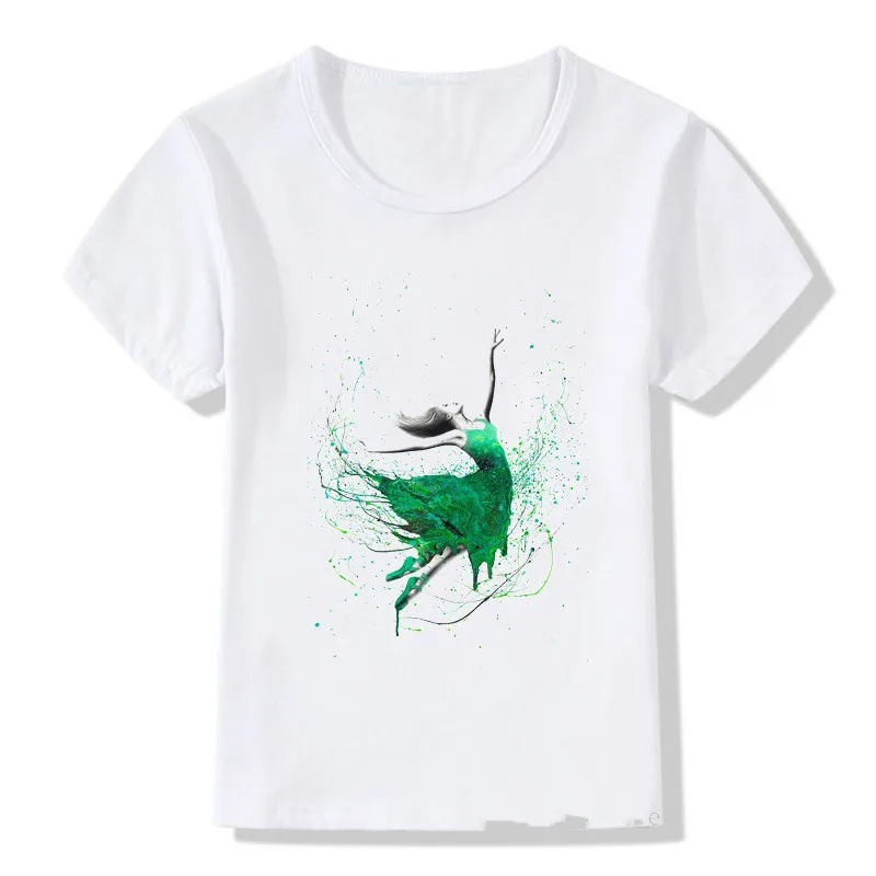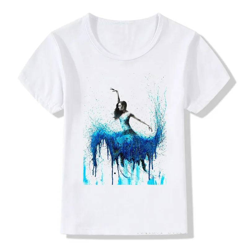 Синее платье с принтом балерины, новинка, футболка, летняя одежда для девочек, футболки, белая футболка, топ, Милая футболка для девочек, детская одежда