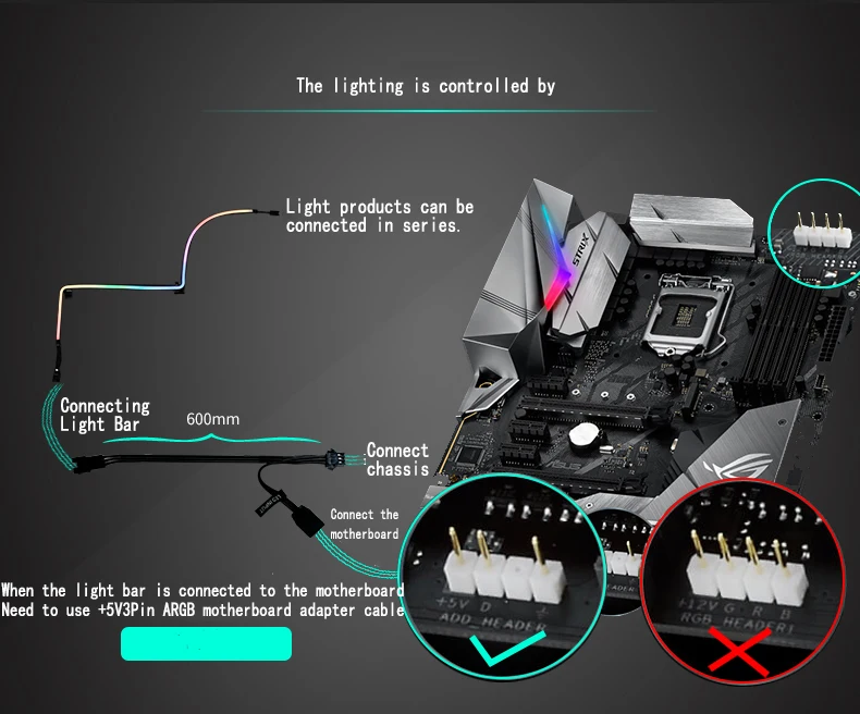 Неоновая цифровая RGB Светодиодная лента Phanteks M5 550 мм 2x мм 5...