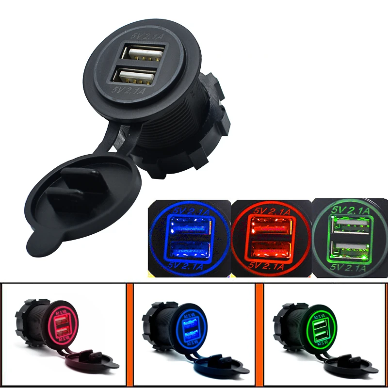 Автомобильное гнездо прикуривателя, двойной USB-разъем для зарядки мотоцикла, 12 в-24 в, usb-разъем питания для автомобильного прикуривателя, светодиодная розетка