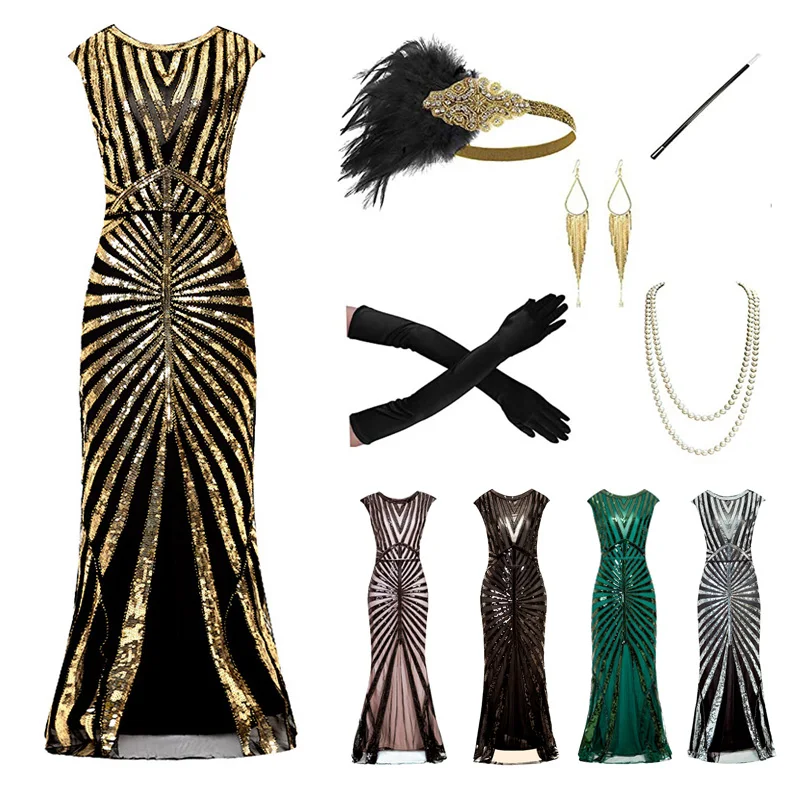 Женское платье в стиле Грейт Гэтсби, длинное винтажное Вечернее Пла...
