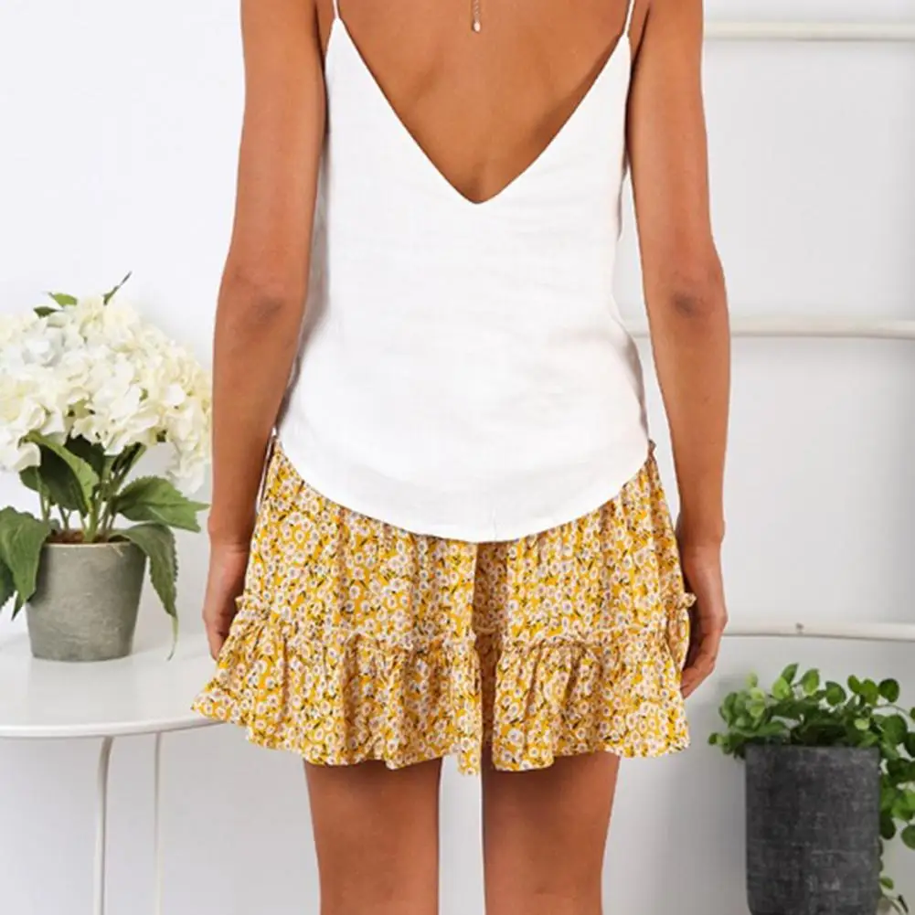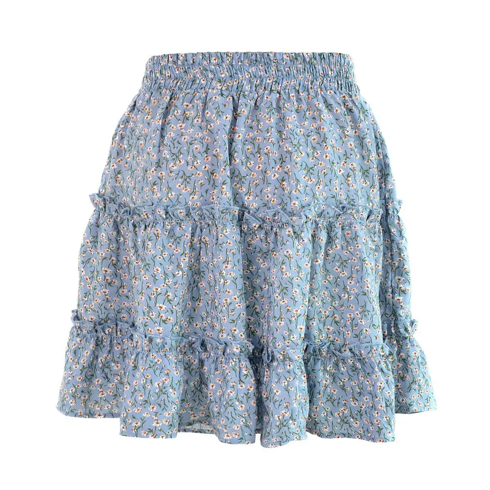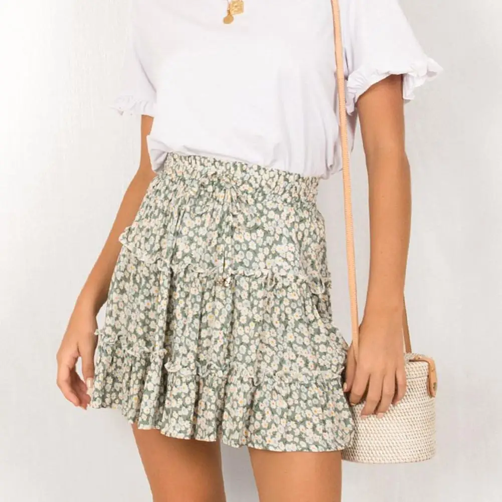 Мини-юбка женская с цветочным принтом, пикантная бандажная модная короткая юбка в стиле бохо с оборками и завышенной талией, размера плюс Плиссированная, на лето