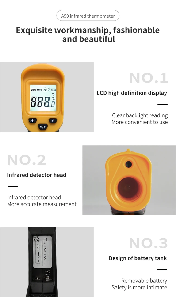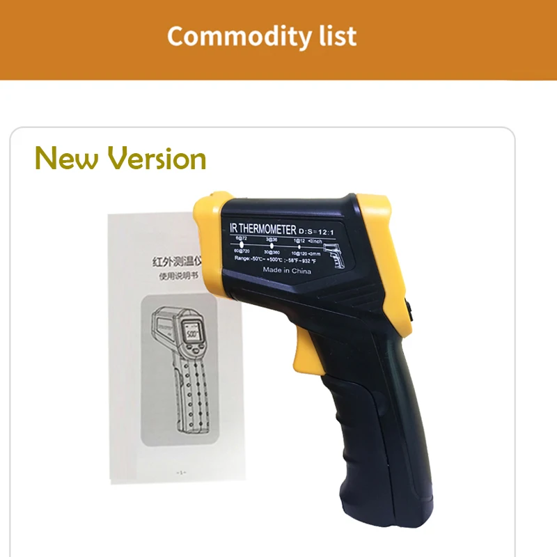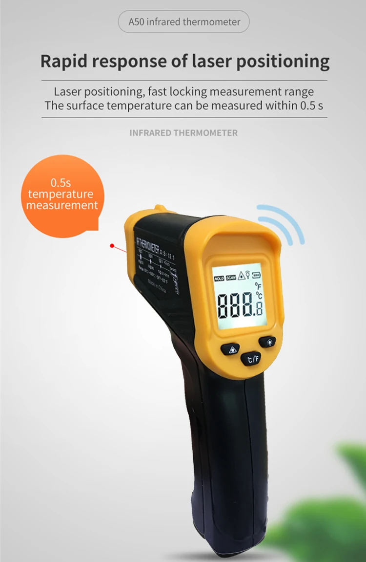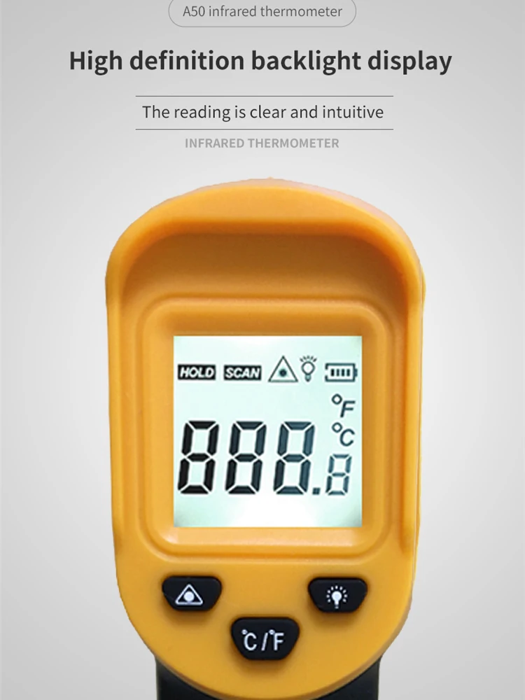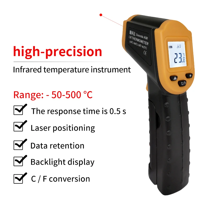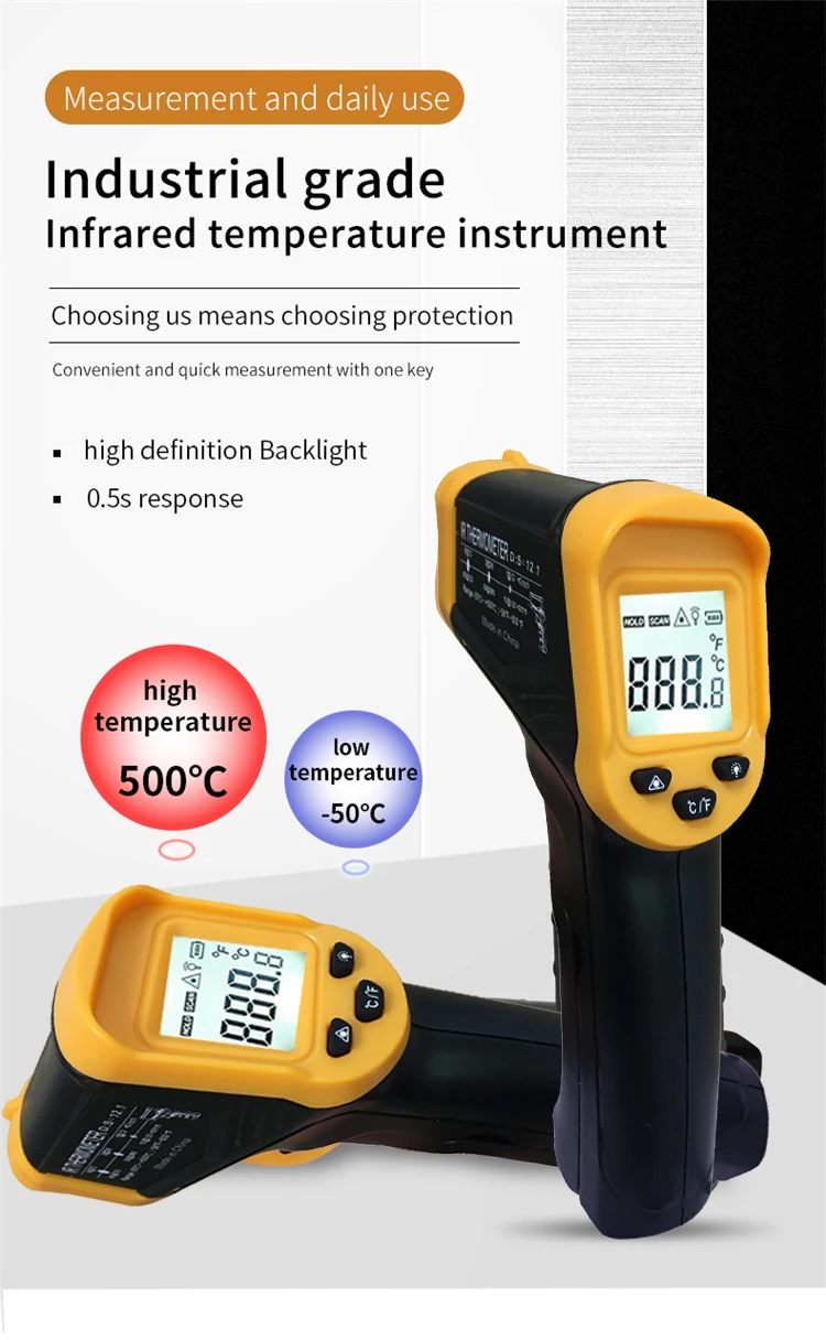 Цифровой Бесконтактный инфракрасный термометр 500C, лазерный пирометр для бойлера, домашняя печь, кондитерские изделия, ванны, воды, барбекю, температура