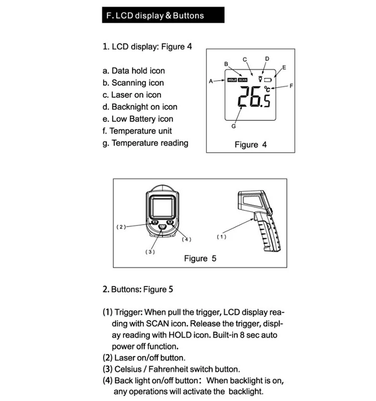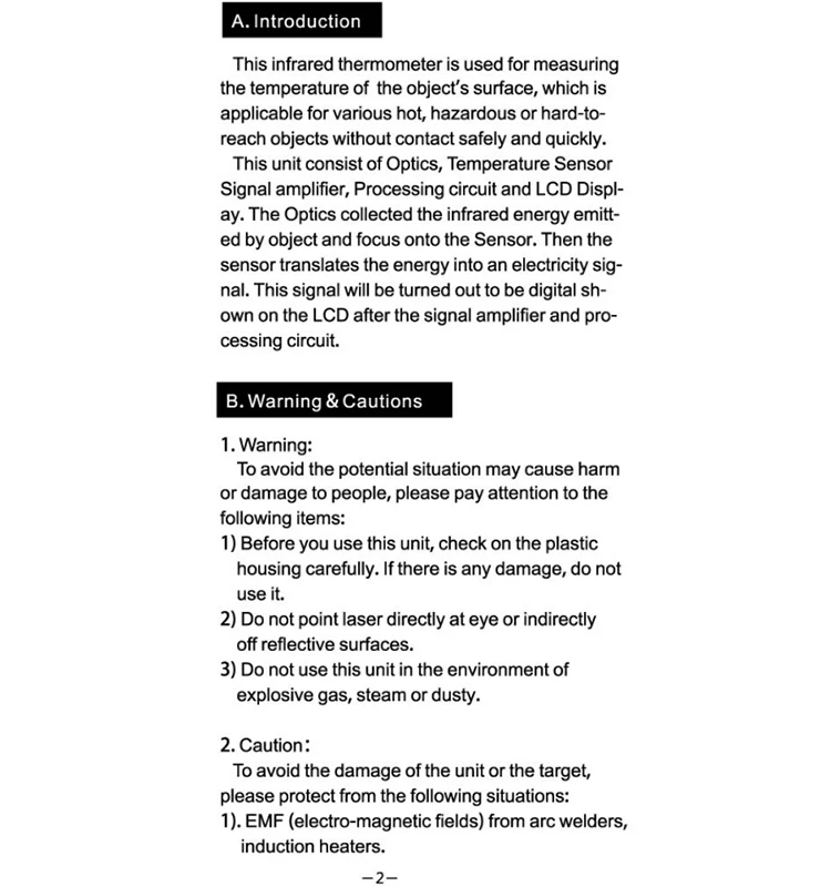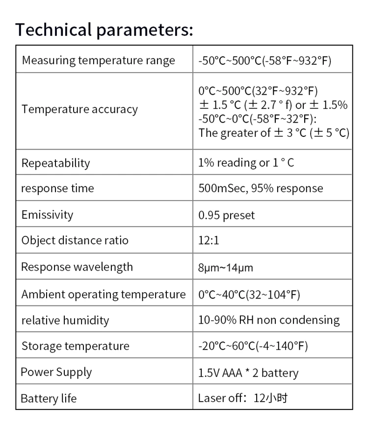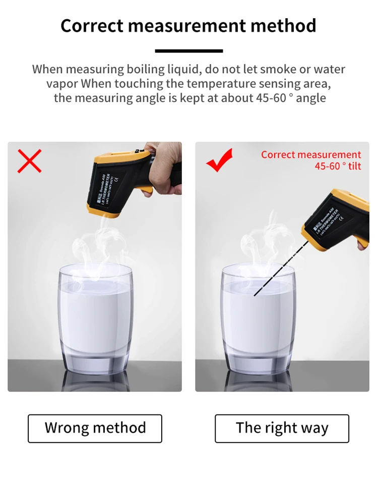 Совершенно бесполезный товар, показания неадекватные, мало того что он показывает не правильно, так он показывает то одни то другие цифры при направлении например горячий чай где мультиметр показывает 80гр., он показывает то 45 то 63, температура моего тела то в районе 26 то 33 вообщем деньги на ветер.