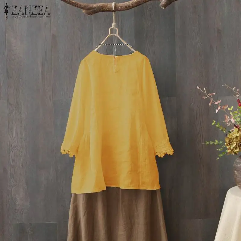 Блузка ZANZEA женская с рукавом 2021 и шнуровкой, повседневная однотонная туника из хлопка и льна, осень 34