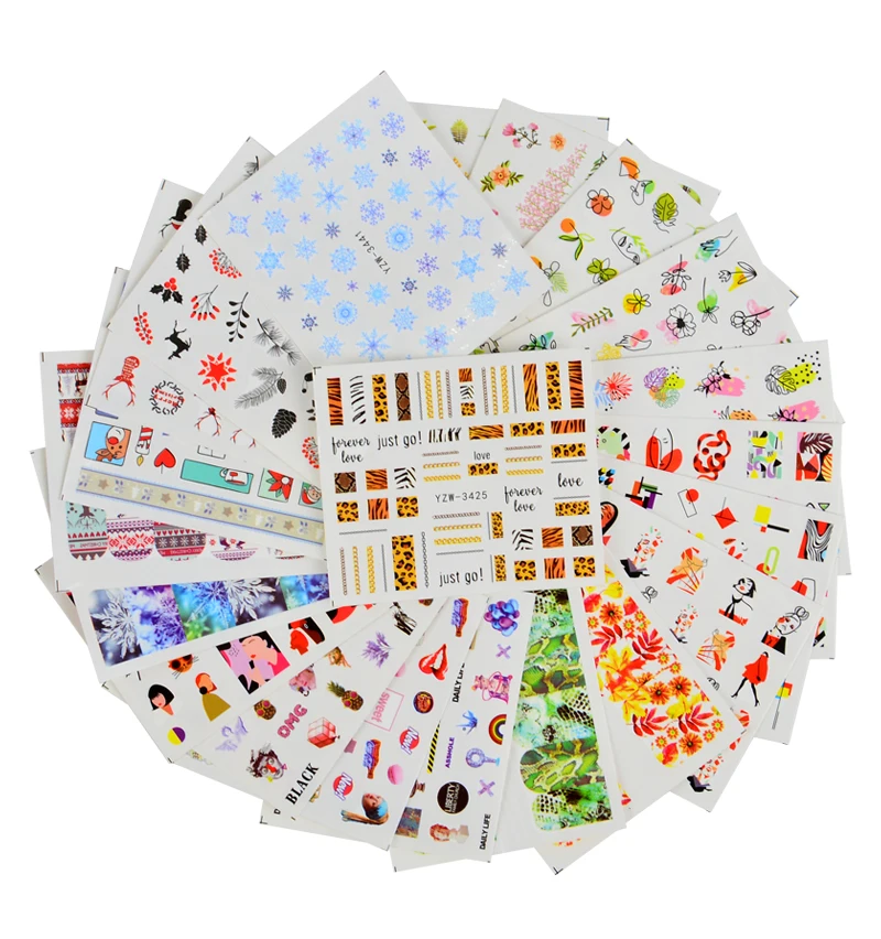 1 лист наклейки для ногтей смешанный дизайн Переводные черные цветы...