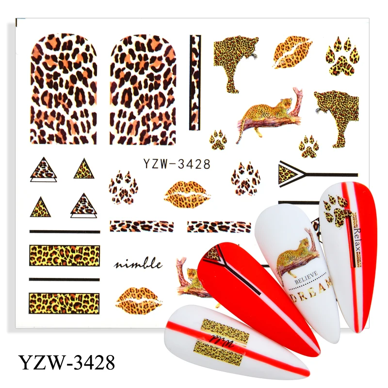 Переводные наклейки для ногтей с леопардовым принтом и змеиным принтом