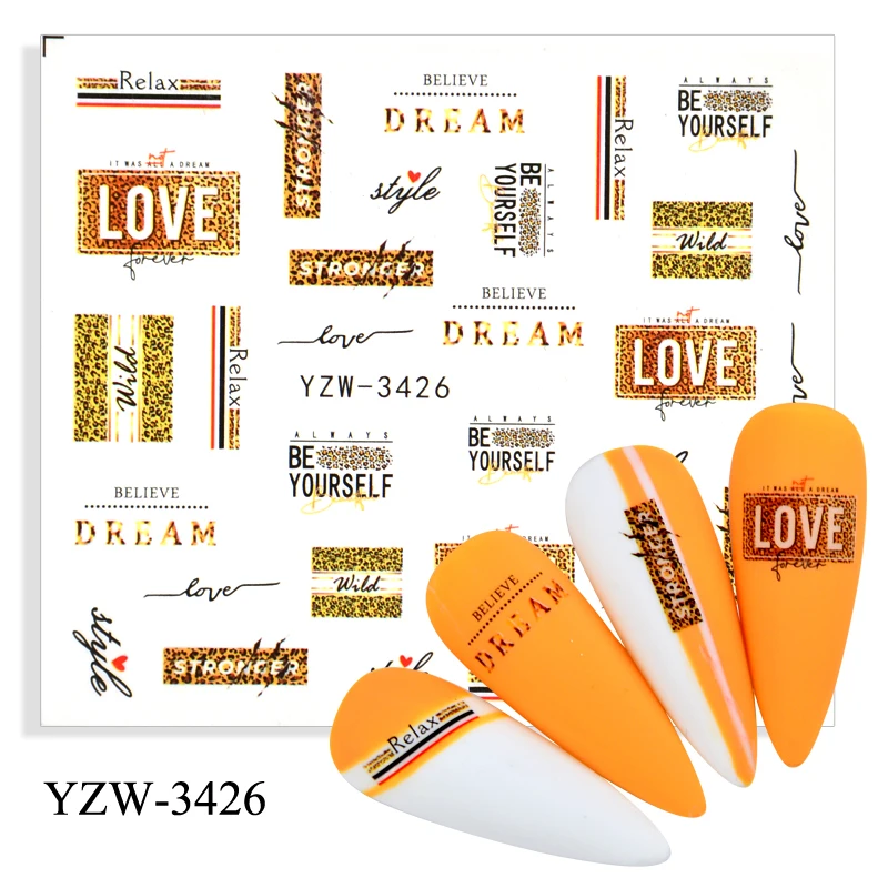 Набор водных переводных картинок для ногтей с леопардовым принтом, алфавит, листья, цветок, Переводные Водные Наклейки для ногтевого дизайна, дизайн листьев, слайдер, Декор