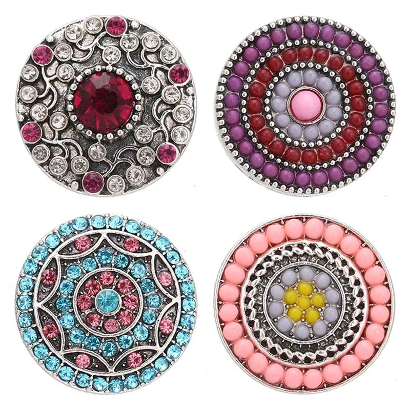 Новые круглые стразы с бисером и цветочным принтом для девочек стили, украшенные металлическим 18 мм Кнопки fit 18 мм оснастки кнопки для браслета ювелирное изделие, опт