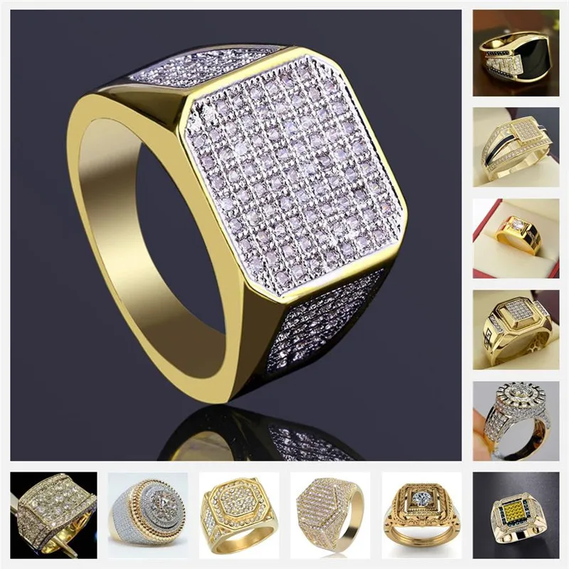 Мужские кольца в деловом стиле с кристаллами циркония, 10 видов, Обручальные, свадебные, вечерние кольца, ювелирные аксессуары, размер 6-13