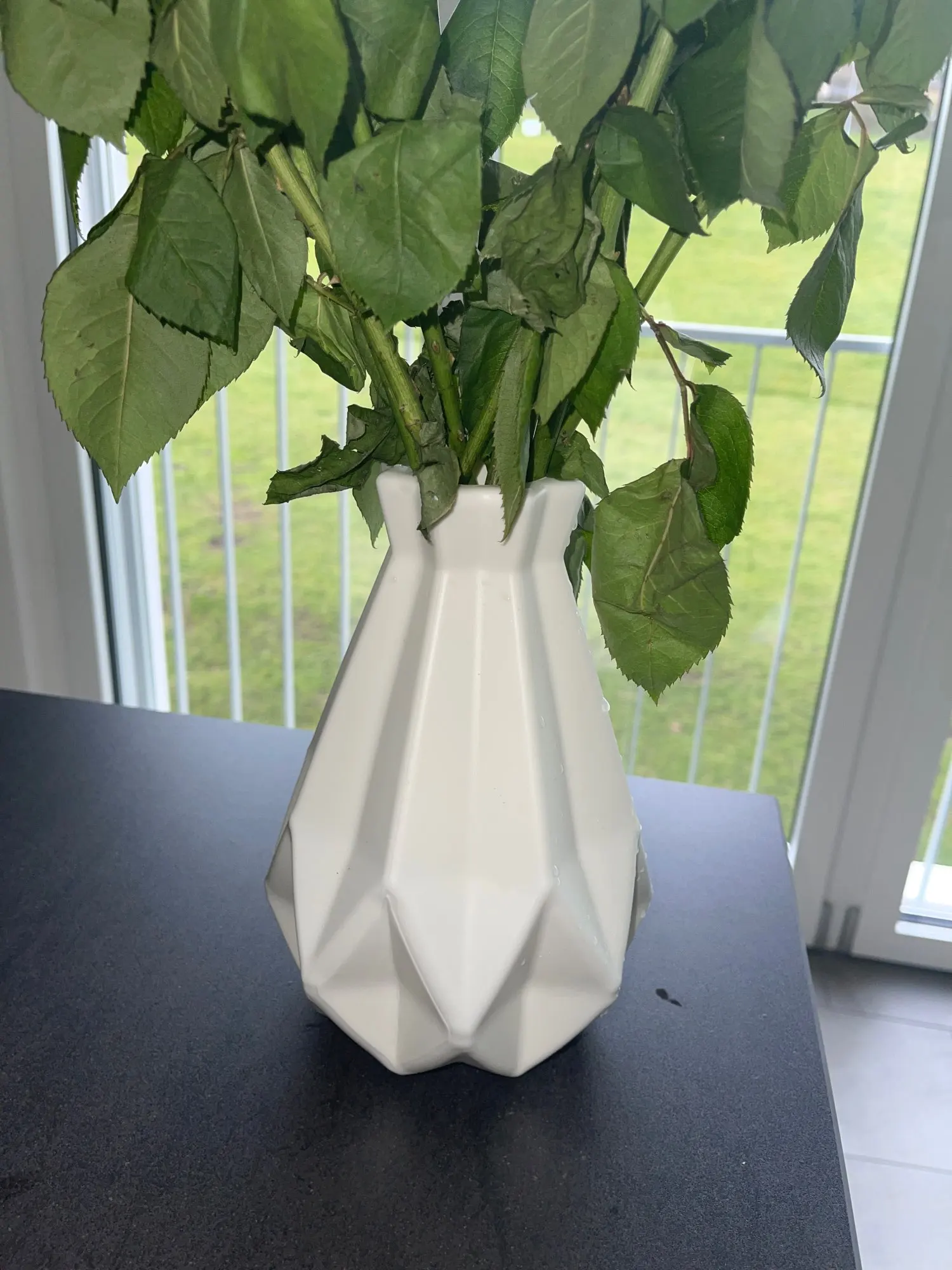 Ваза супер! Лёгкая, хорошее качество. Без изъянов. Смотрится стильно в интерьере. Продавца рекомендую.