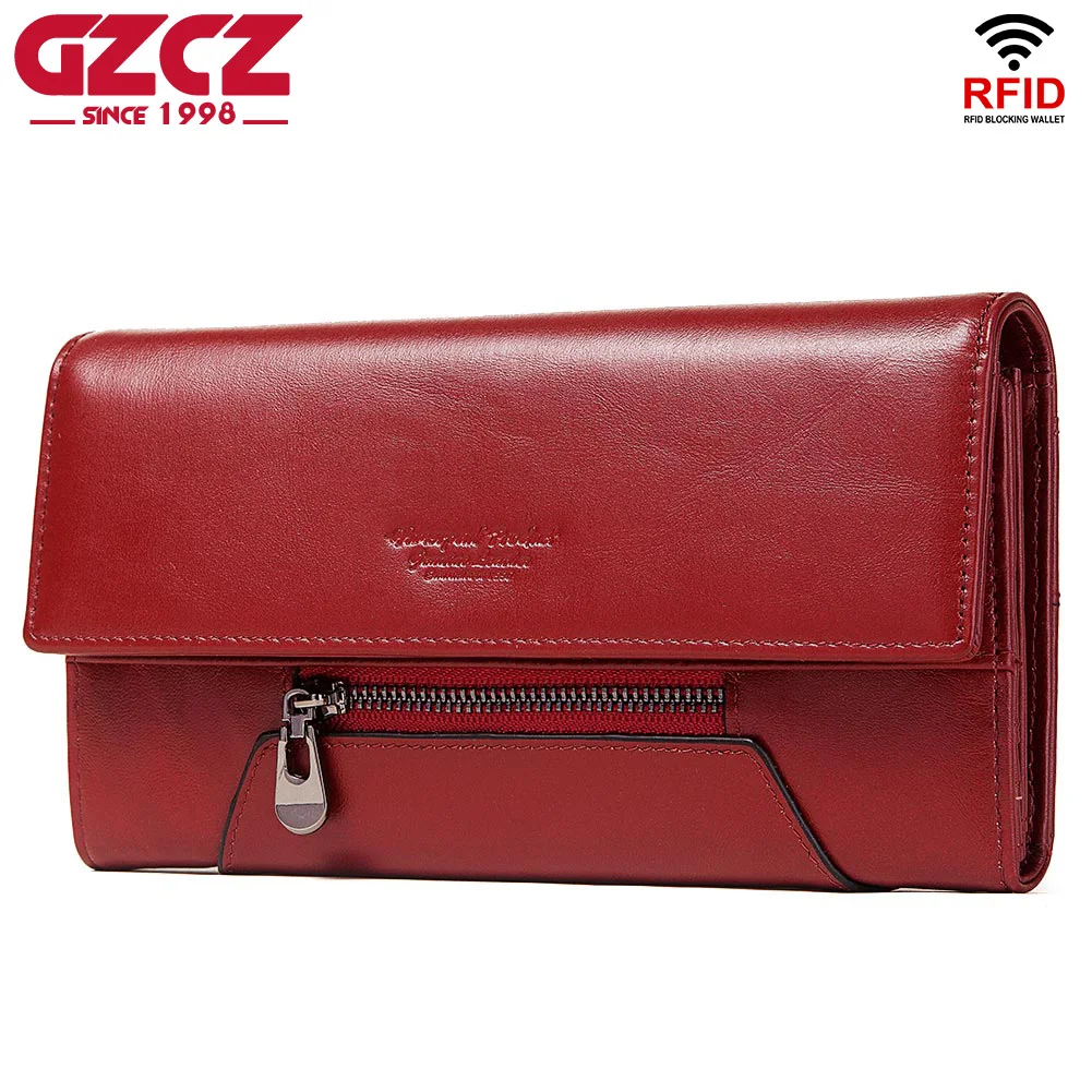 Женский кошелек GZCZ из натуральной кожи, красный женский длинный клатч, женское модное портмоне, Роскошный кошелек для денег для девушек, волшебный кошелек для монет на молнии