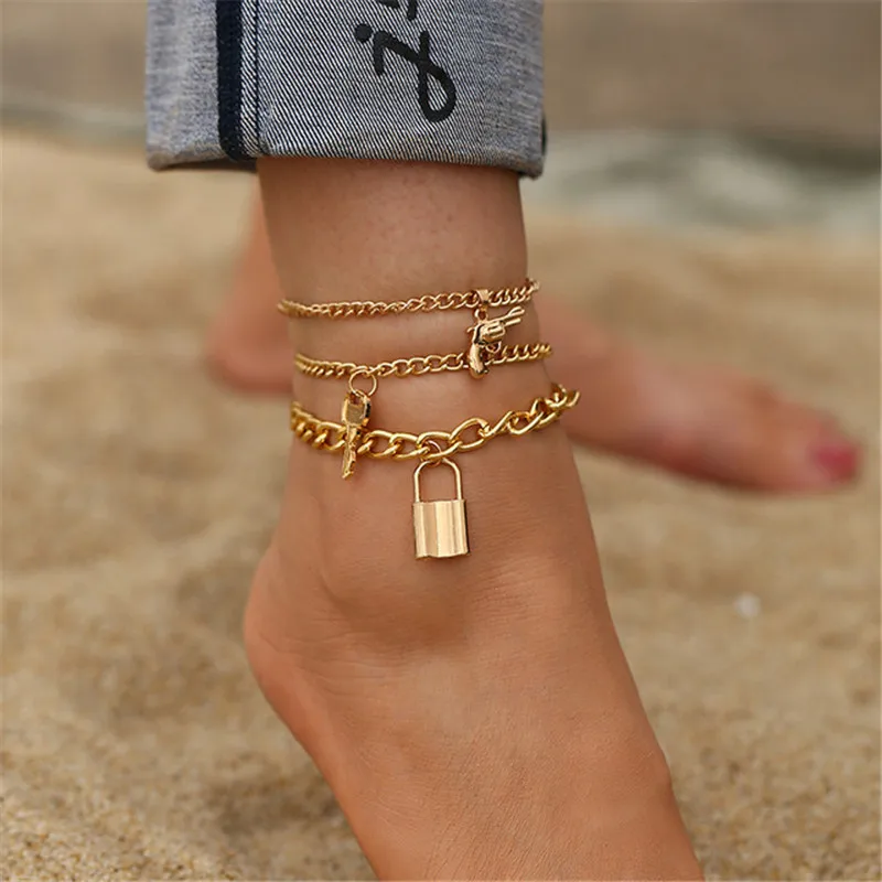 Key Word 2Butterfly Anklet,Gold Anklet,Lock Anklet