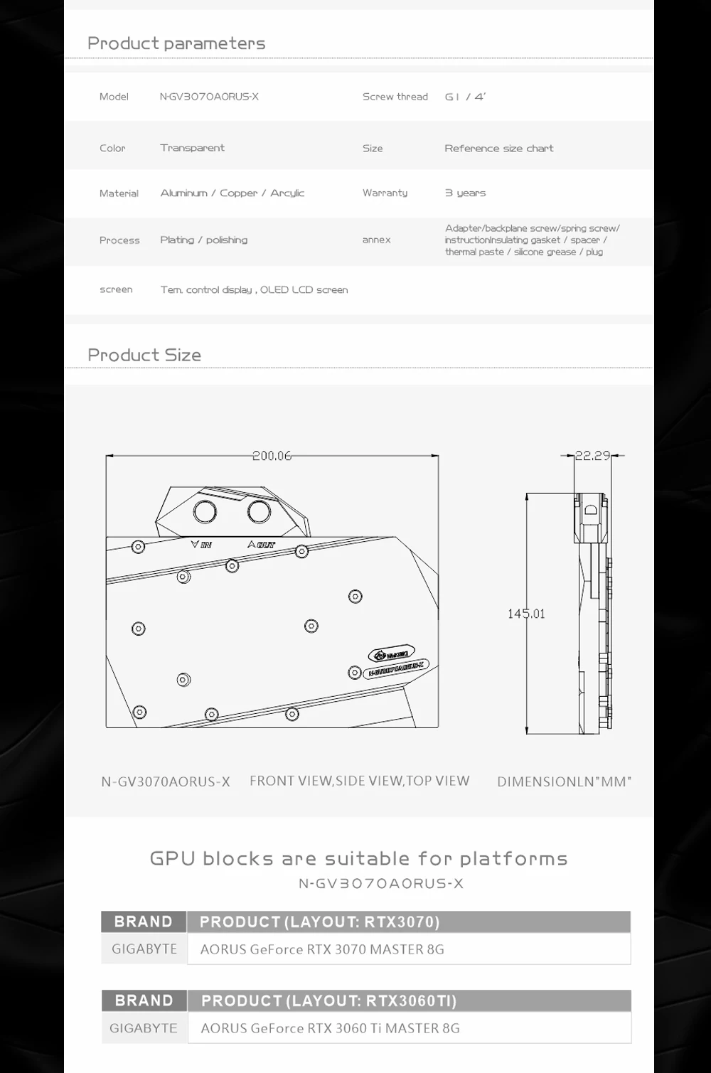 Compatible platformGIGABYTE AORUS RTX3070/3060Ti MASTER 8G