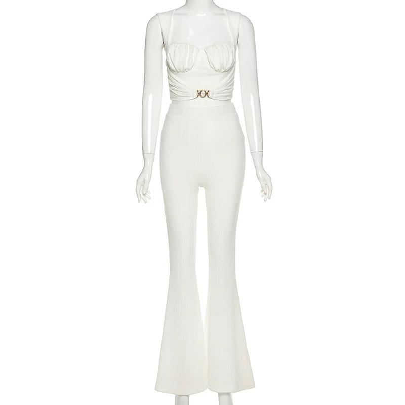 Сексуальный белый укороченный Топ женский комплект 2 шт. без рукаво...