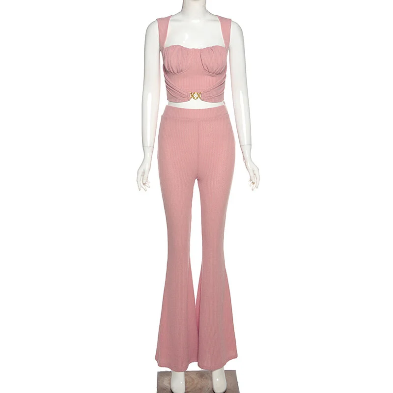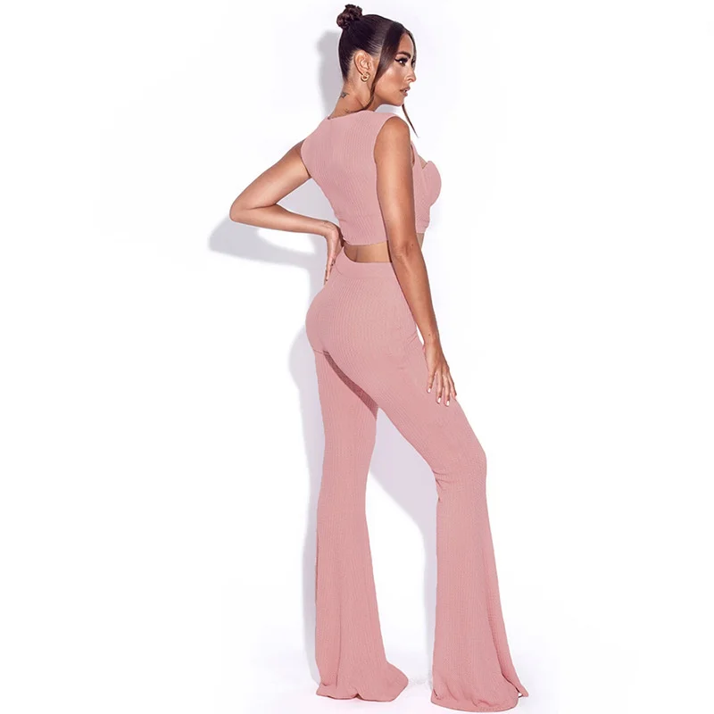 Повседневный трикотажный Женский комплект 2 шт. Townlike, укороченный топ и длинные расклешенные брюки, комплект из двух предметов, весна-осень 2021