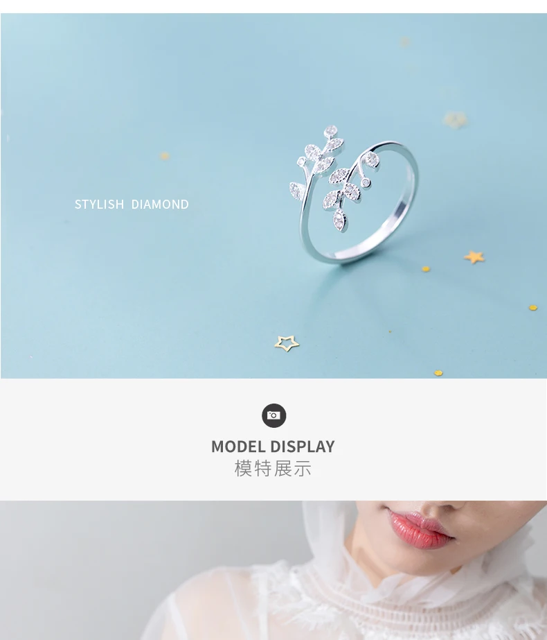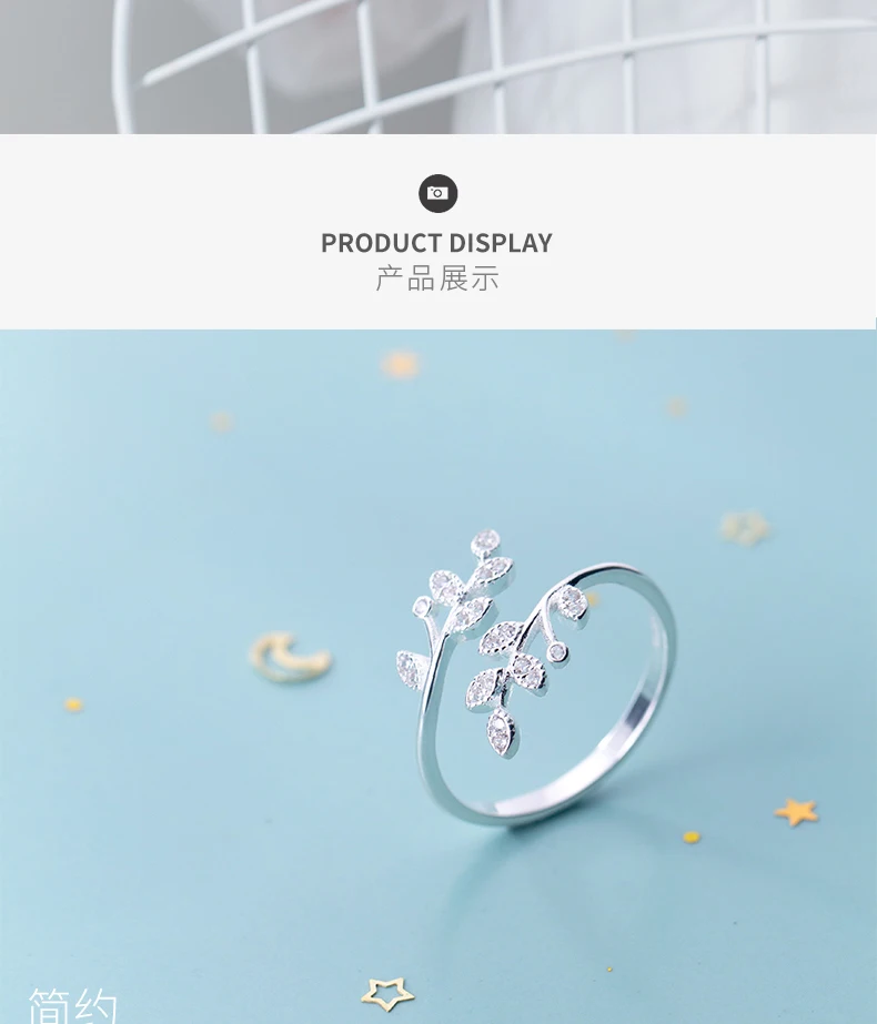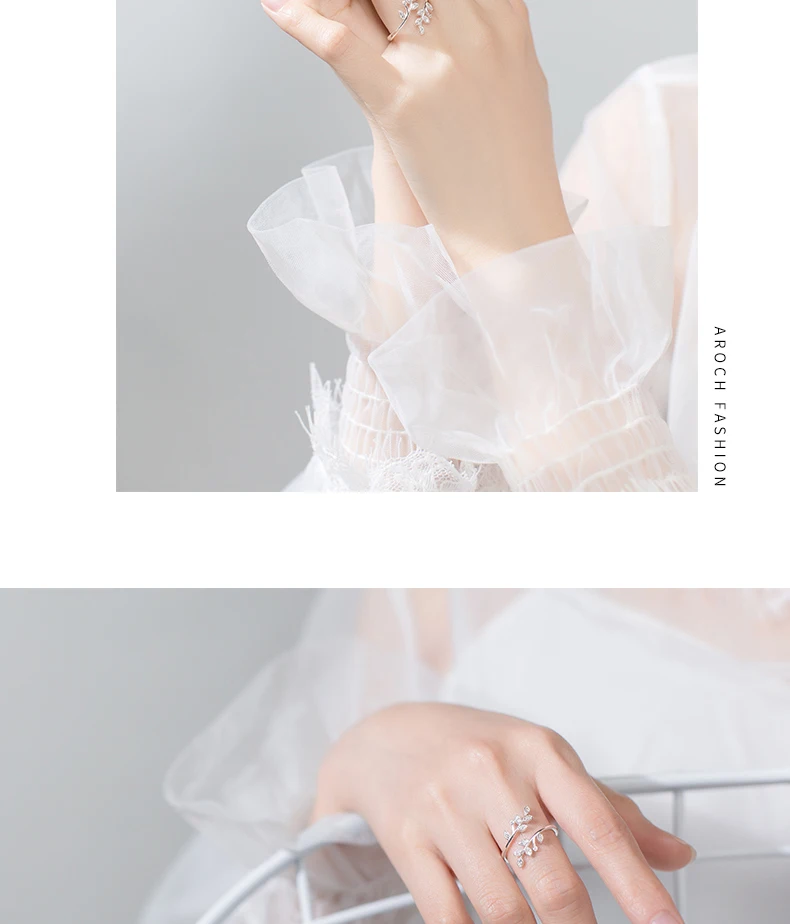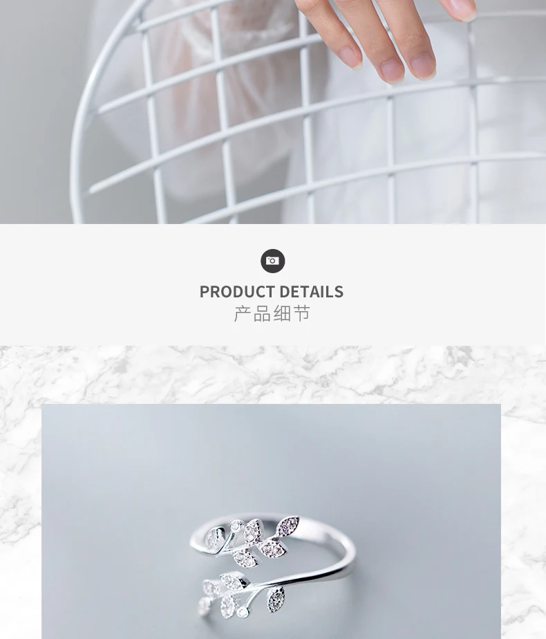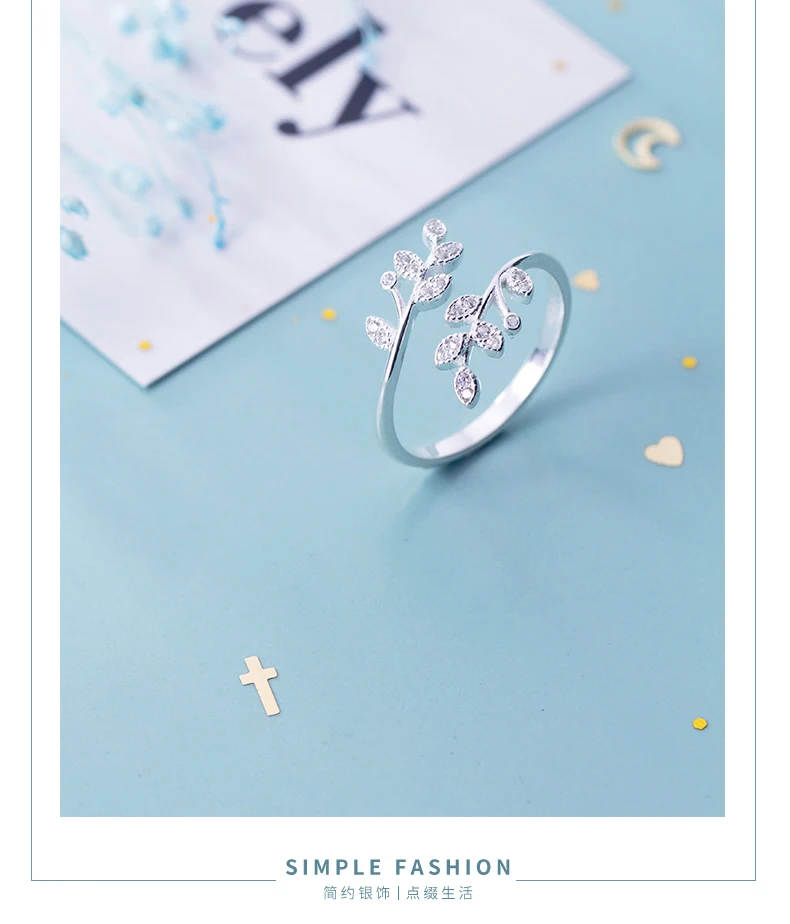 Женское кольцо с листьями и кристаллами, регулируемое кольцо с сере...