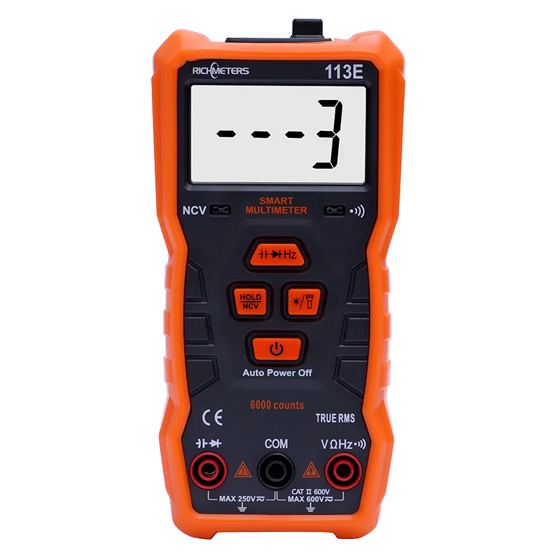 Мультиметр RICHMETERS 113A 2000 отсчетов 1. Диапазон переменного тока: 200 В/600 ВРазрешение: 100 мВ/1 в2. Диапазон постоянного тока: 200 мВ/2 в/20 в/200 В/600 вРазрешение 0.1 мВ/1 мВ/10 мВ/100 мВ/1 в3. Переменный ток постоянного тока: 2mA/20mA/200mA/10AРазрешение: 1uA/10uA/100uA/10mA4. Диапазон сопротивления: 200/2K/200K/2M/20MРазрешение: 0,1/1/100/1K/10K