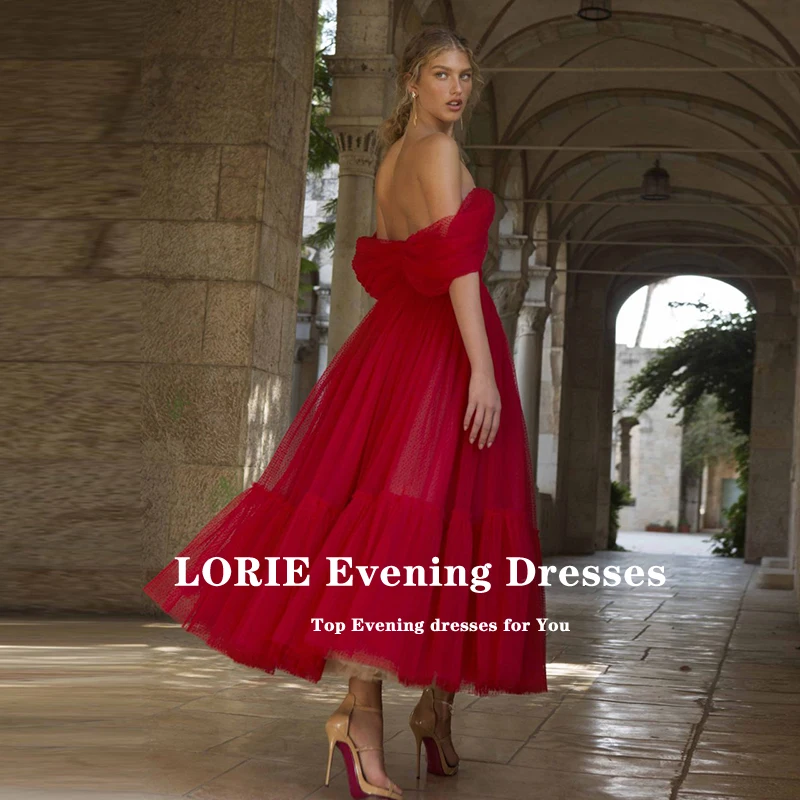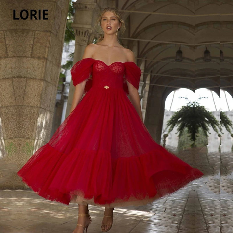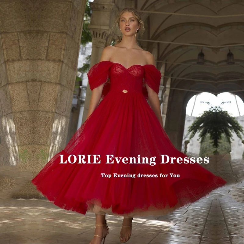 Платья для выпускного LORIE, красные, с открытыми плечами, из тюля, в горошек, арабское вечернее платье с поясом, вечернее платье знаменитости, 2021