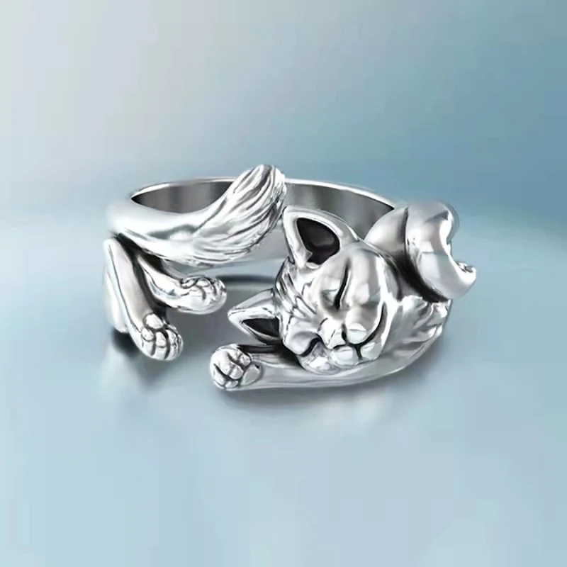 Женское кольцо-Тотем в стиле тайского котенка, регулируемое кольцо в стиле ретро, подарок на свадьбу, помолвку