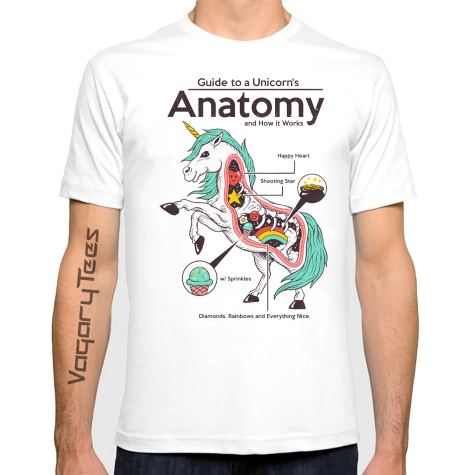 Футболка мужская с изображением анатомии единорога, милая уличная одежда, белая Повседневная рубашка с коротким рукавом, на лето