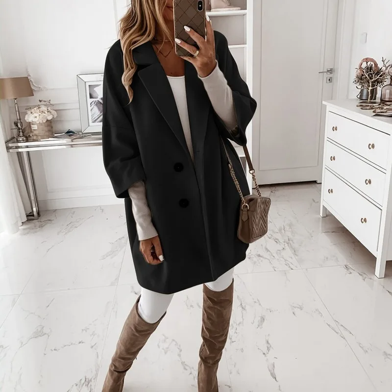 Женское шерстяное пальто, длинное Свободное пальто с рукавами три ч...