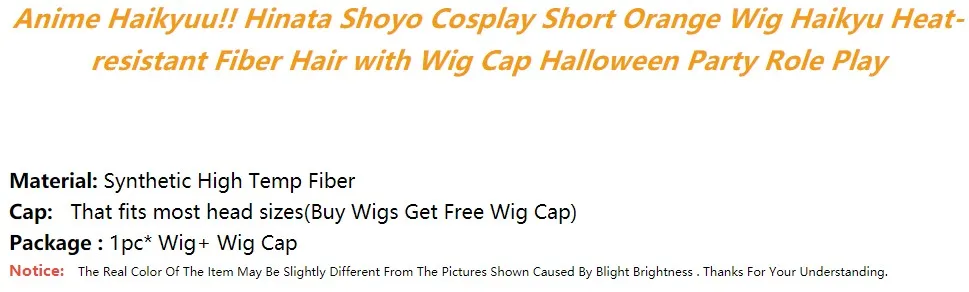 Аниме Haikyuu! Короткий оранжевый парик Хината шойо, для косплея, Haikyu, термостойкие волосы с париком, шапочкой, для вечевечерние на Хэллоуин, ролевых игр