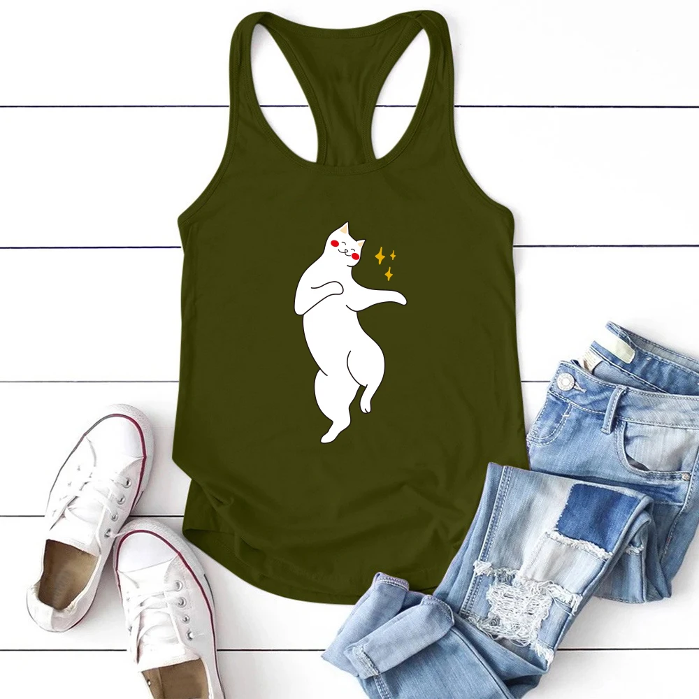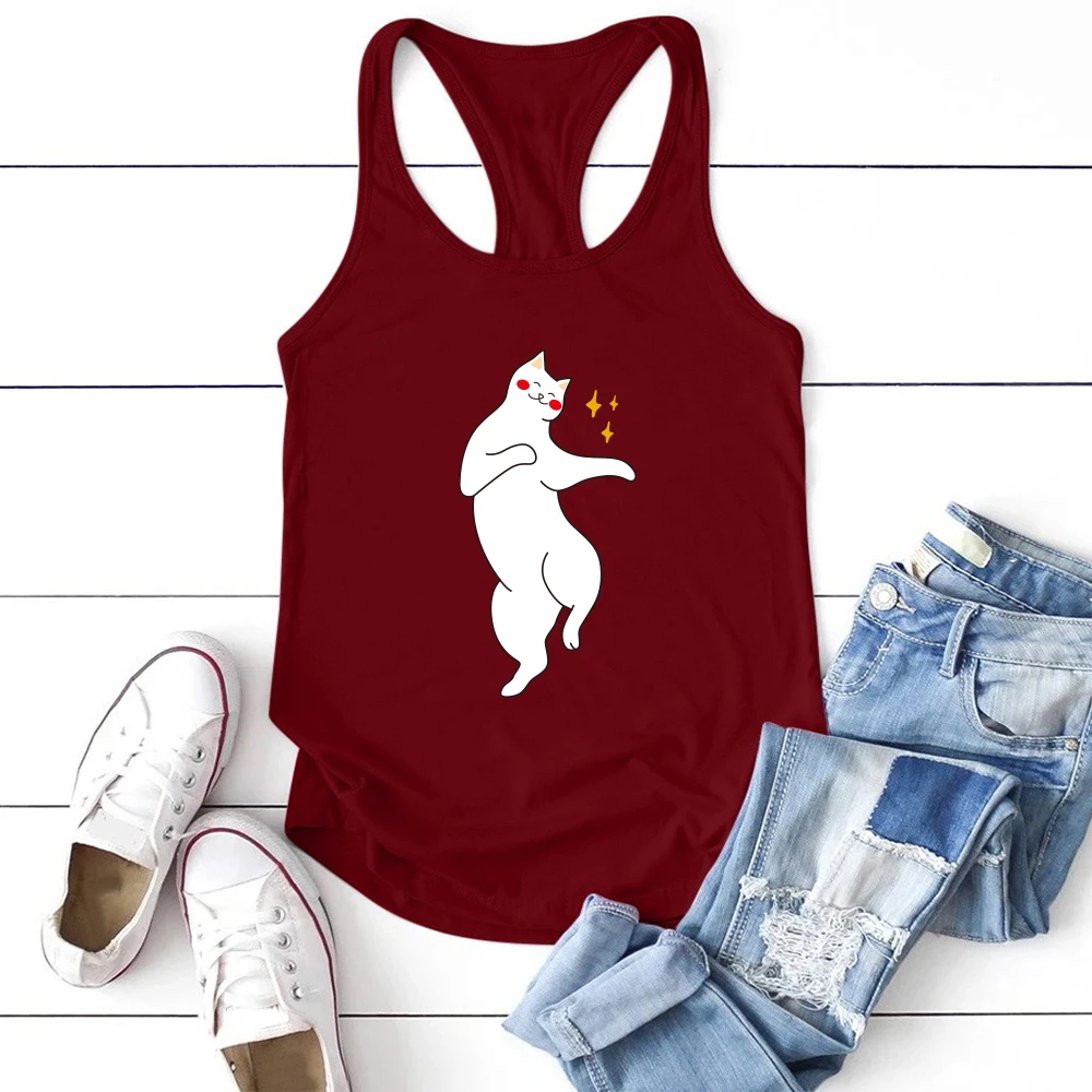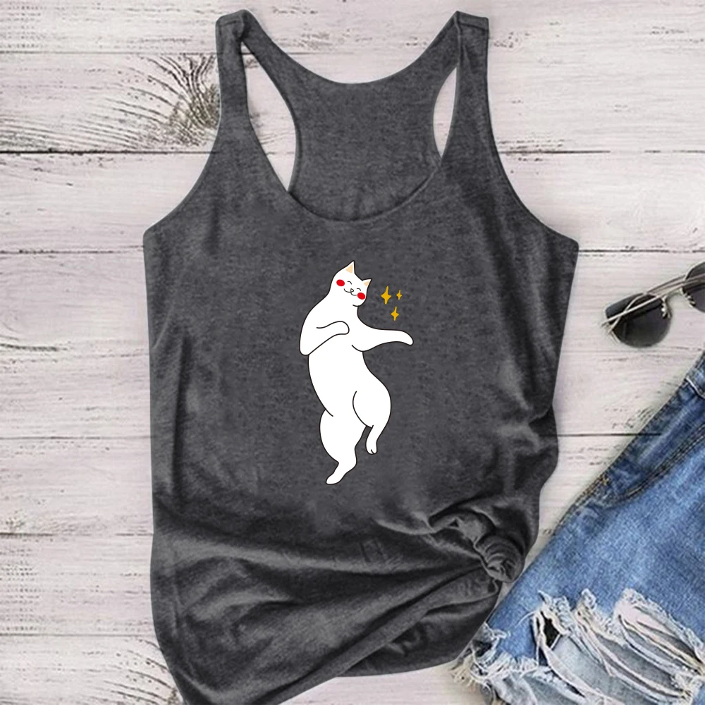 2021 Лидер продаж Белый Кот печати для женщин майка без рукавов летняя майка Femme Топ Женская спортивная забавная жилетка Повседневная аниме одежда
