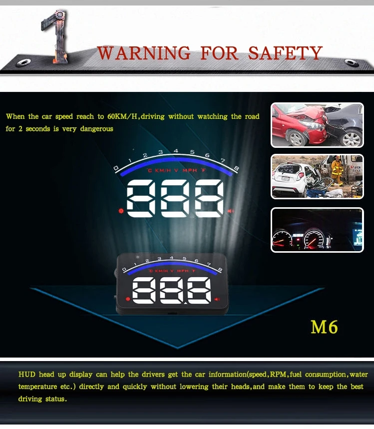 Проектор на лобовом стекле M6, цифровой HUD OBD2, скорость, обороты в минуту, температура, напряжение