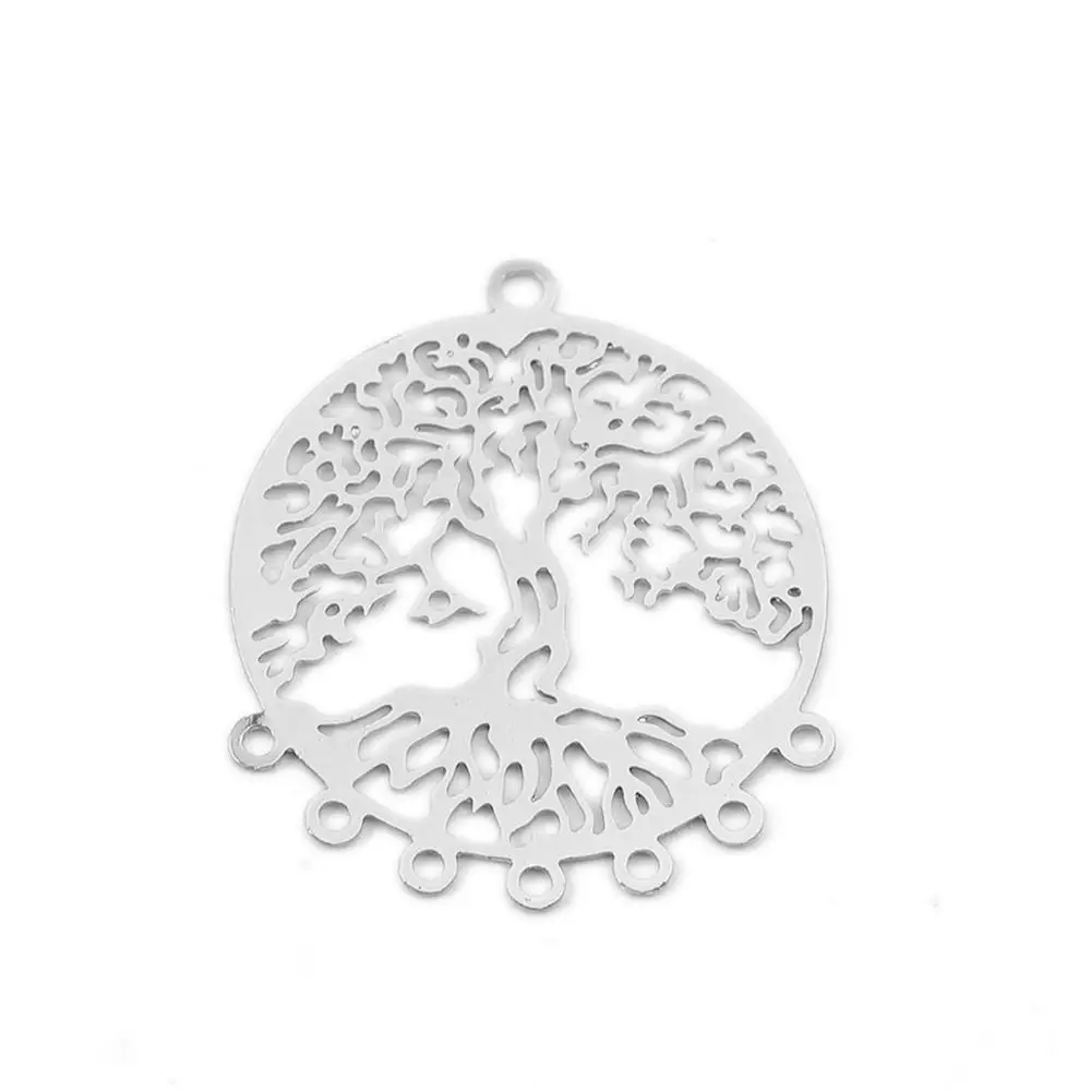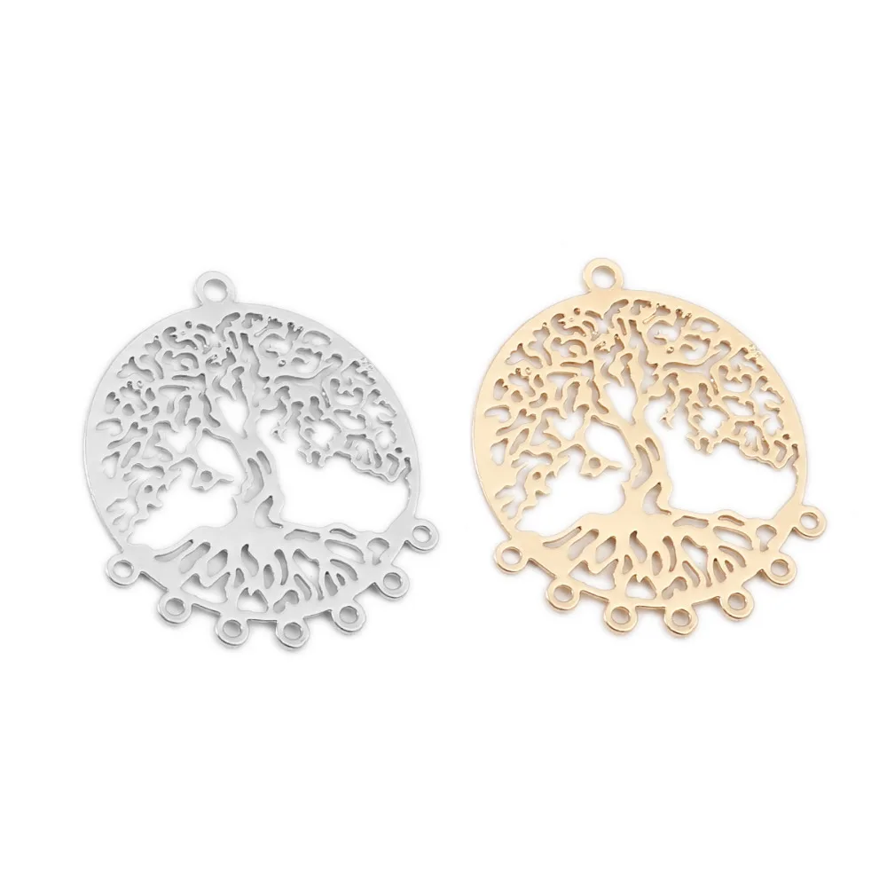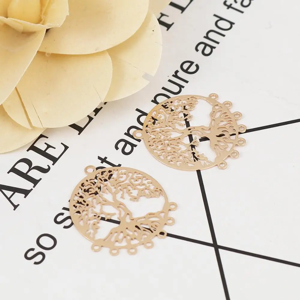 10 шт. модные медные филигранные штамповки разъемы круглый полый KC Золотой Серебряный Цвет узор Древа Жизни Подвески 29x25 мм