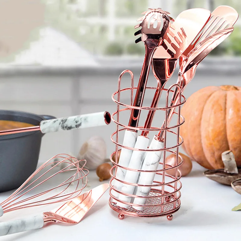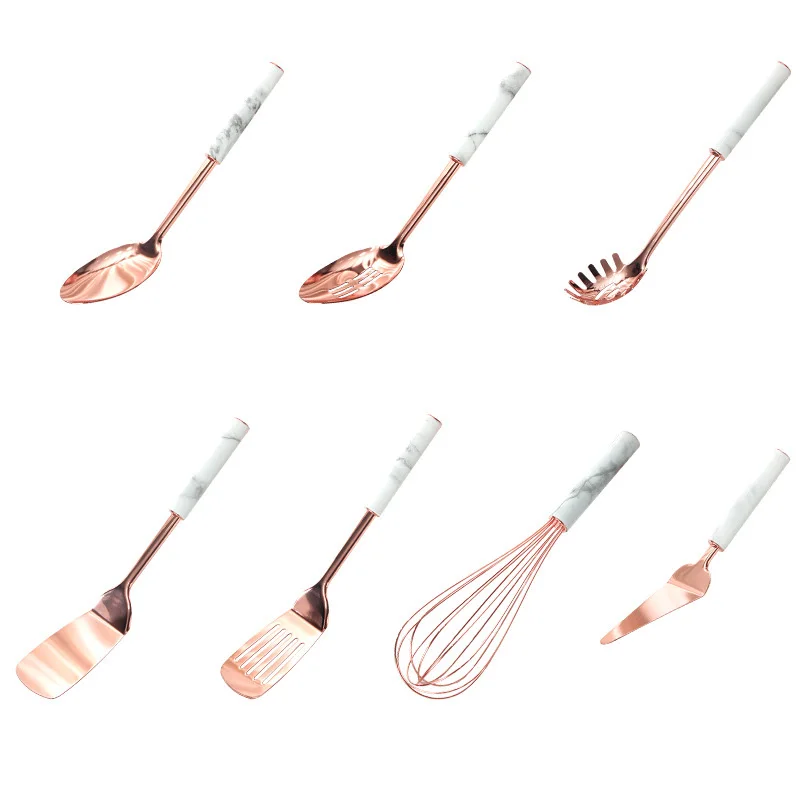 Набор кухонных гаджетов посуда из нержавеющей стали с медным покрытием с керамической ручкой, Сервировочная Ложка Тернер венчик