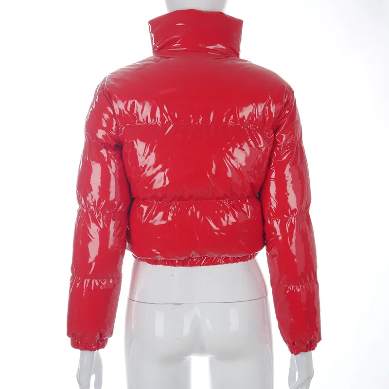 Укороченный пузырьковый пуховик 2021, зимние парки из искусственной кожи, теплая женская верхняя одежда с длинным рукавом, на молнии, Повседневная однотонная облегающая куртка