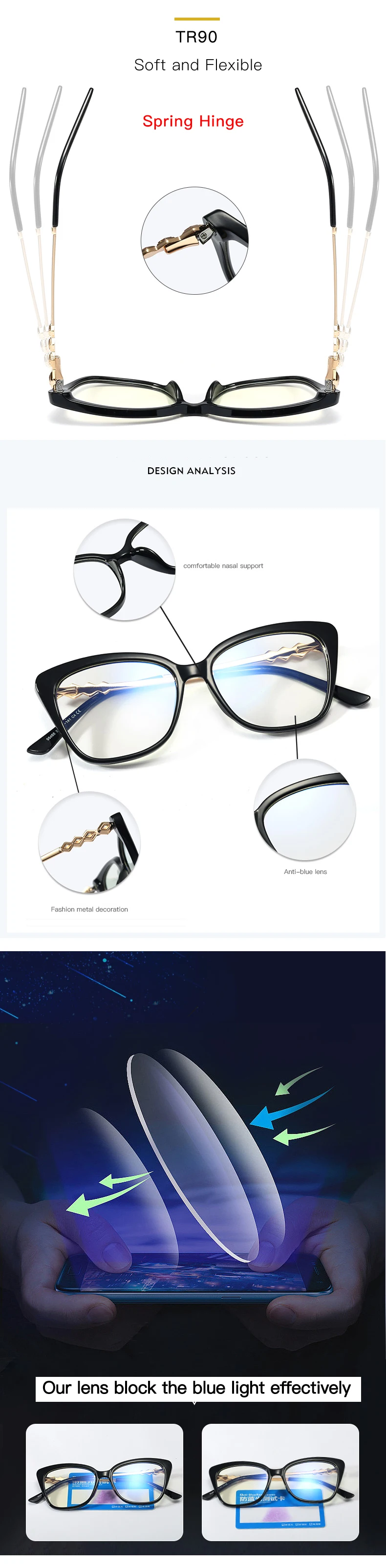 Очки для чтения женские LONSY, в оправе кошачий глаз, с защитой от синего света