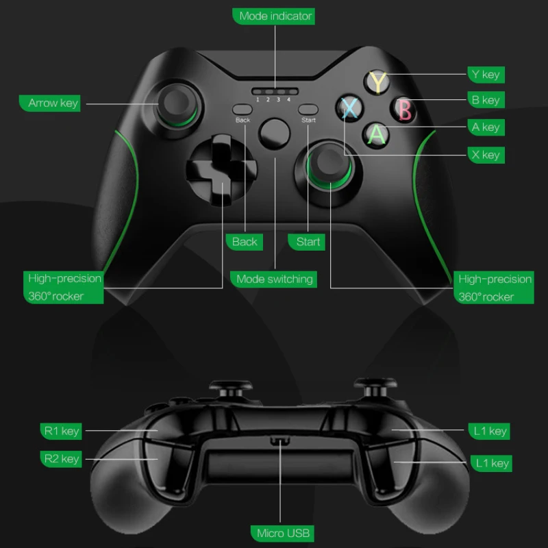 (1) беспроводной геймпад 2,4G, без Bluetooth. Совместим со смартфоном Android для Xbox one для консоли PS3 для Windows PC 7/8/10.