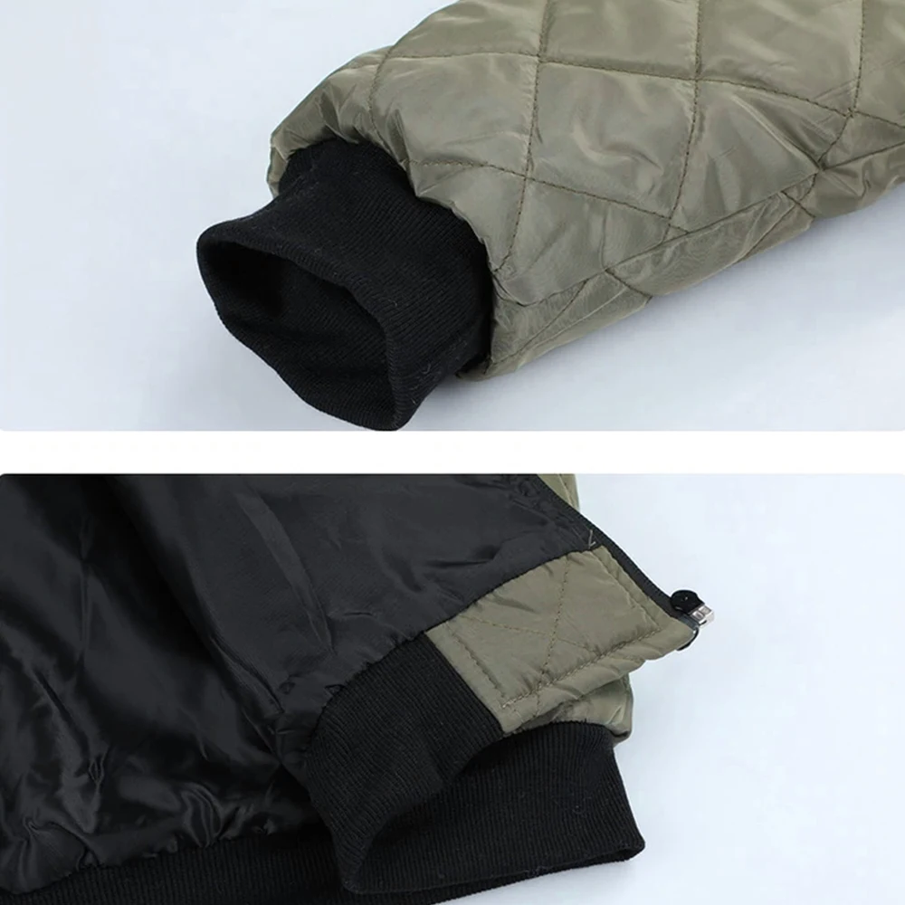 1. Длинные рукава с ребристым вязаным воротником, манжетами и задней талией обеспечивают защиту от ветра. Удобная и теплая Алмазная стеганая подкладка.
