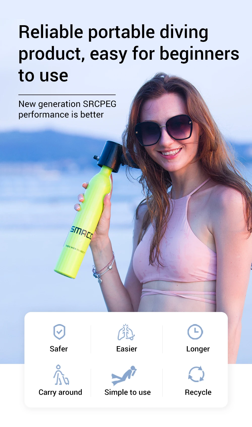 SMACO мини-оборудование для дайвинга, погружной цилиндр с возможностью 8 минут, многоразовый регулятор емкости 0,5 литров