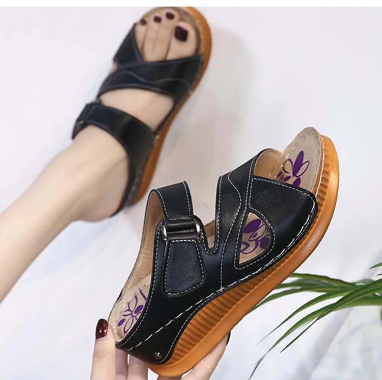 Сандалии женские в стиле ретро, босоножки на танкетке, богемный сти...
