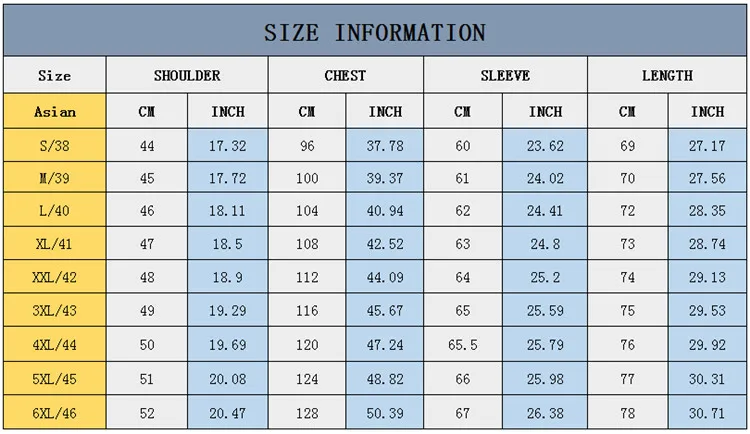 SizeS/M/L/XL/2XL/3XL/4XL/5XL/6XL