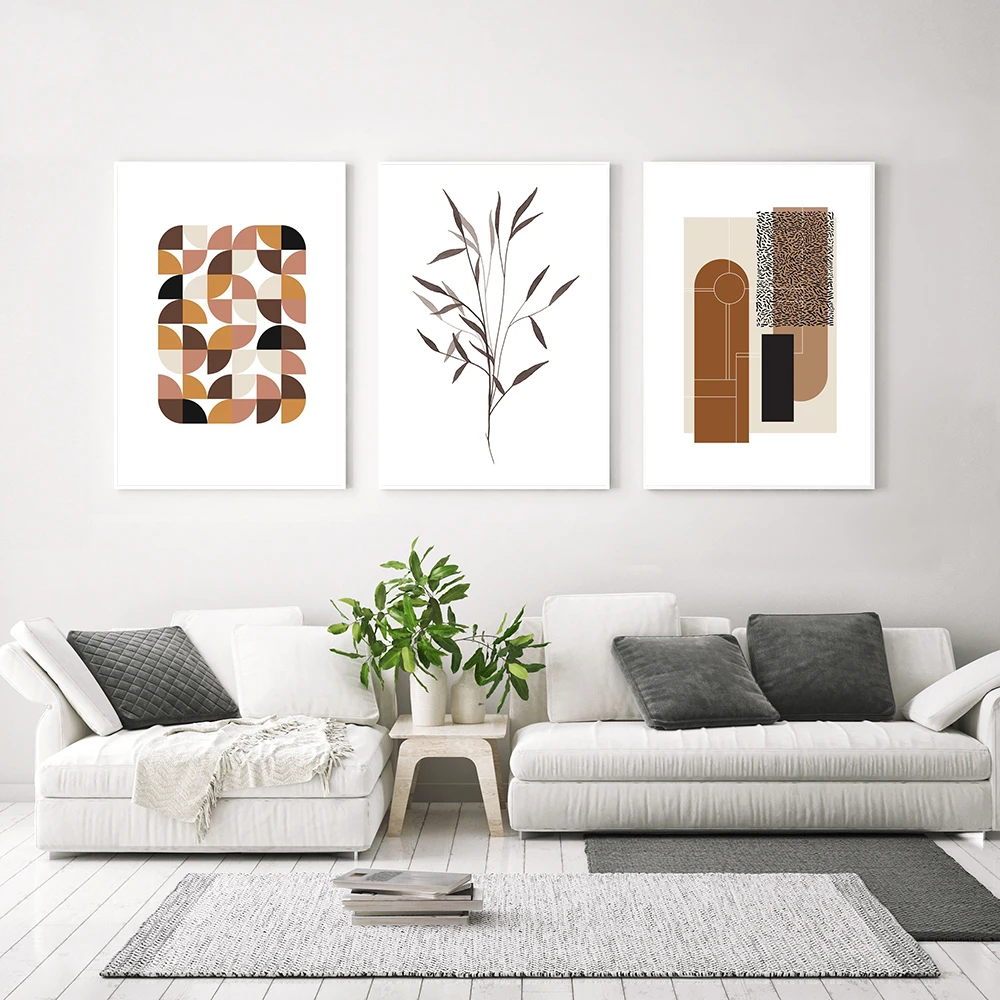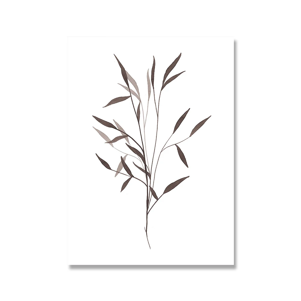 Картина на холсте с нордическим принтом, изображение листьев на анг...