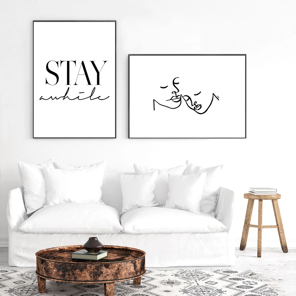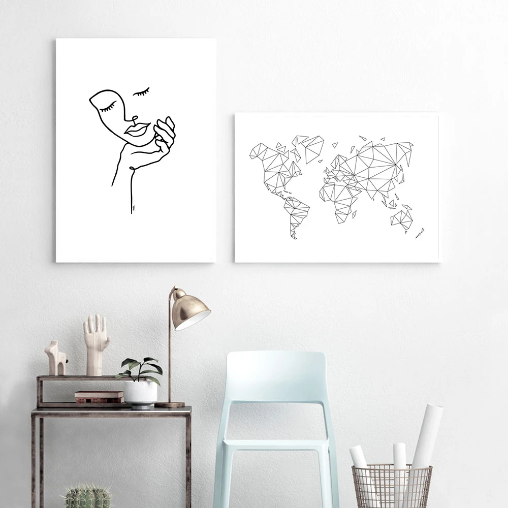 Абстрактная живопись, холст, плакат, скандинавский Простой Настенный художественный Рисунок, линия лица, листья, скандинавские плакаты и принты, картины для гостиной