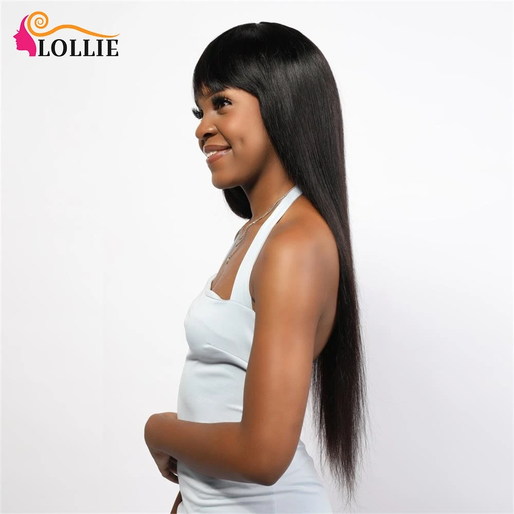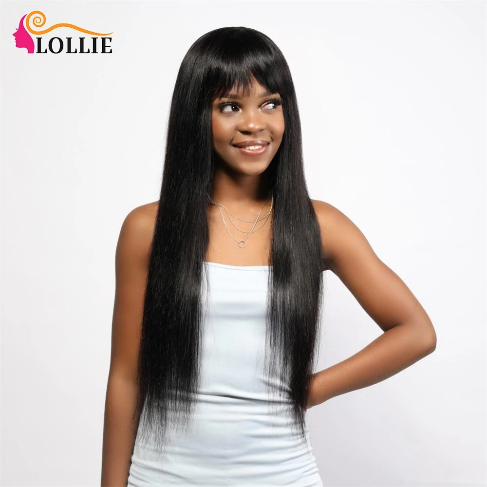 Прямые парики из человеческих волос с челкой, парики с бахромой машинной работы, парик из человеческих волос без кружева спереди, парик из человеческих волос Remy для черных женщин