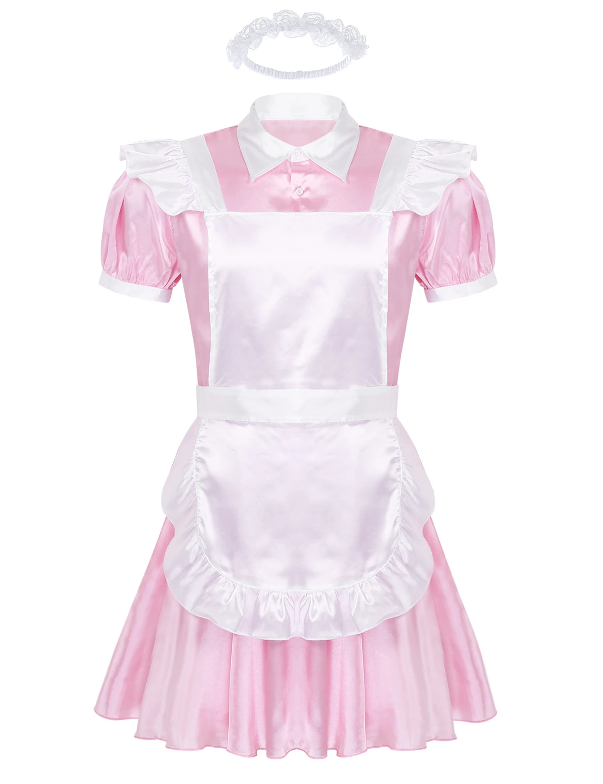 Особенности: Мужская взрослая горничная Сисси, костюм для косплея, одежда для кроссдинга, скрытая застежка-молния сбоку. Отложной воротник и короткий Пышный рукав, дизайнерское платье на пуговицах спереди, поставляется с отдельным фартуком и повязкой на голову. Хороший блеск, изготовлен из высококачественной шелковистой атласной ткани, не мнется, очень мягкий, гладкий и приятный для кожи, удобный в носке. Идеально подходит для ночного клуба, ролевой игры, карнавальные костюмы вечерние, карнавал, маскарад, тематических вечеринок и Хэллоуина. Перед оформлением заказа внимательно ознакомьтесь с таблицей размеров. Рекомендуется ручная стирка в холодной воде.
