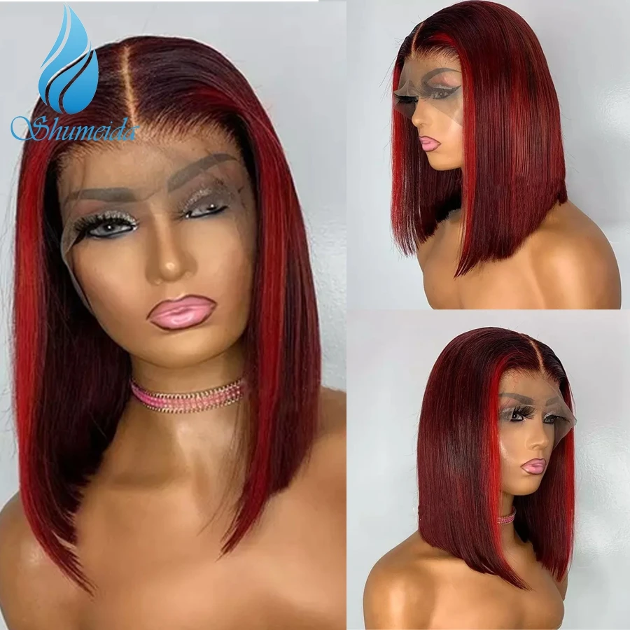 Красный парик из человеческих волос со шнуровкой спереди, средней длины, бразильские волосы Remy, парик из человеческих волос на шнуровке спереди, короткий парик с детскими волосами для черных женщин