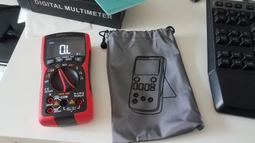 До Питера дошла посылка за 5 дней, курьером до двери! Мультик отличный! При прозвонке диодов (этот же режим и прозвонки), дополнительно пищалке, светит красный светодиод в верхней части корпуса. Прозвонка откликается мгновенно! Скорость переключения кратности сопротивления в АВТО режиме, чуть ниже UNI-T 61E. Есть неточность в описании: батарейки не АА, а ААА! И чехол, не коробка матерчатая а пакетик матерчатый. Жаль, что пакет мягкий, придётся докупать отдельно жёсткий бокс. В целом, продавца и мультик всем советую!